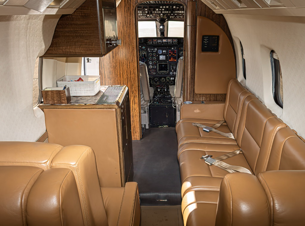 Cabin experience is oriented around a traditional midsize layout, typically with a club seating group and additional forward or aft seats depending on configuration. Expect a functional aisle and seating environment suitable for work and short rest periods, with amenities varying widely by interior refurbishment status. Noise levels, upholstery, and in-cabin power/connectivity are largely dependent on avionics and cabin upgrades completed over the aircraft’s life.