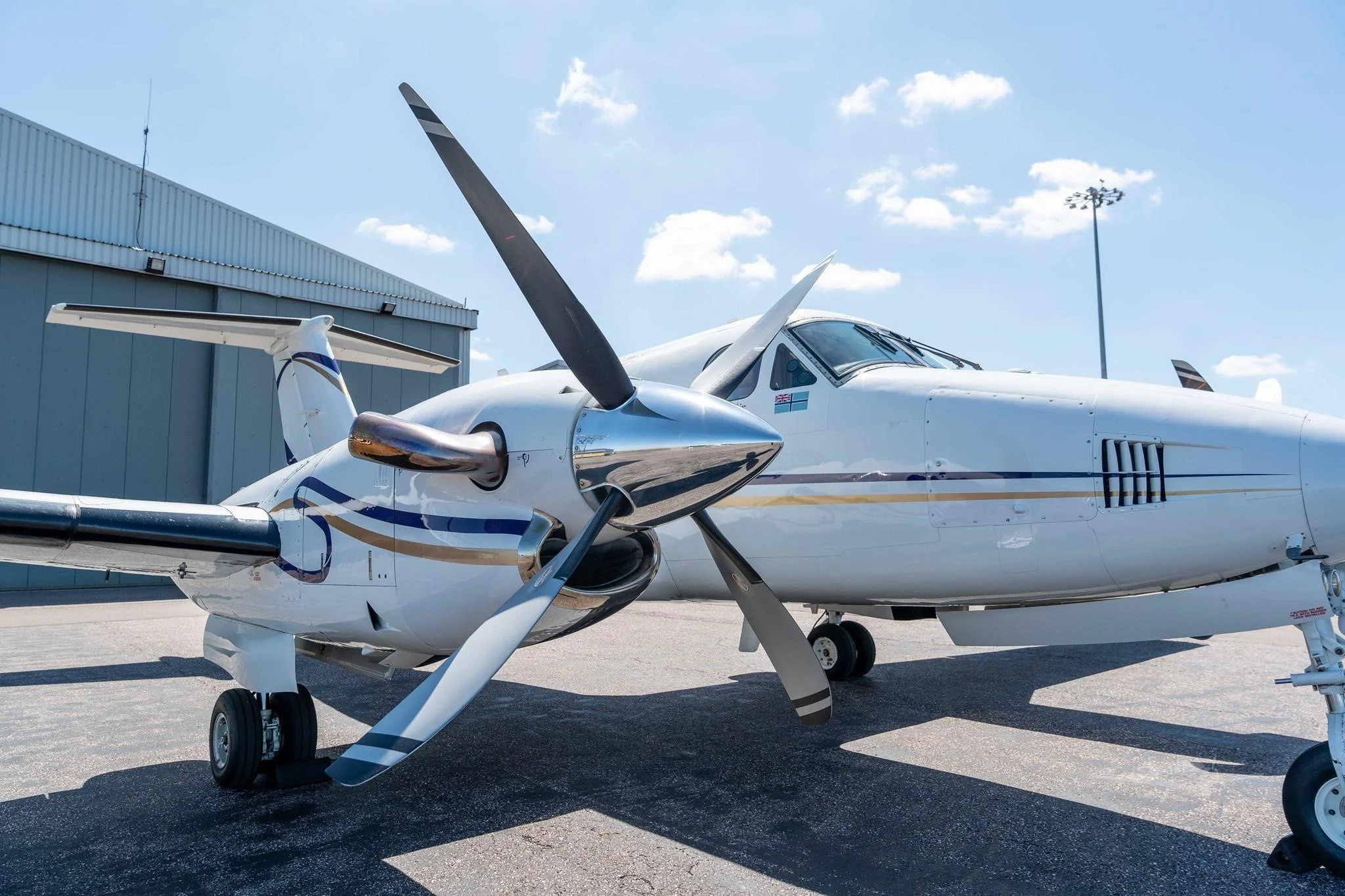 - Propellers: Hartzell four-blade with Raisbeck Quiet Prop, next overhaul due by 25/09/2029 or 20,501 hours