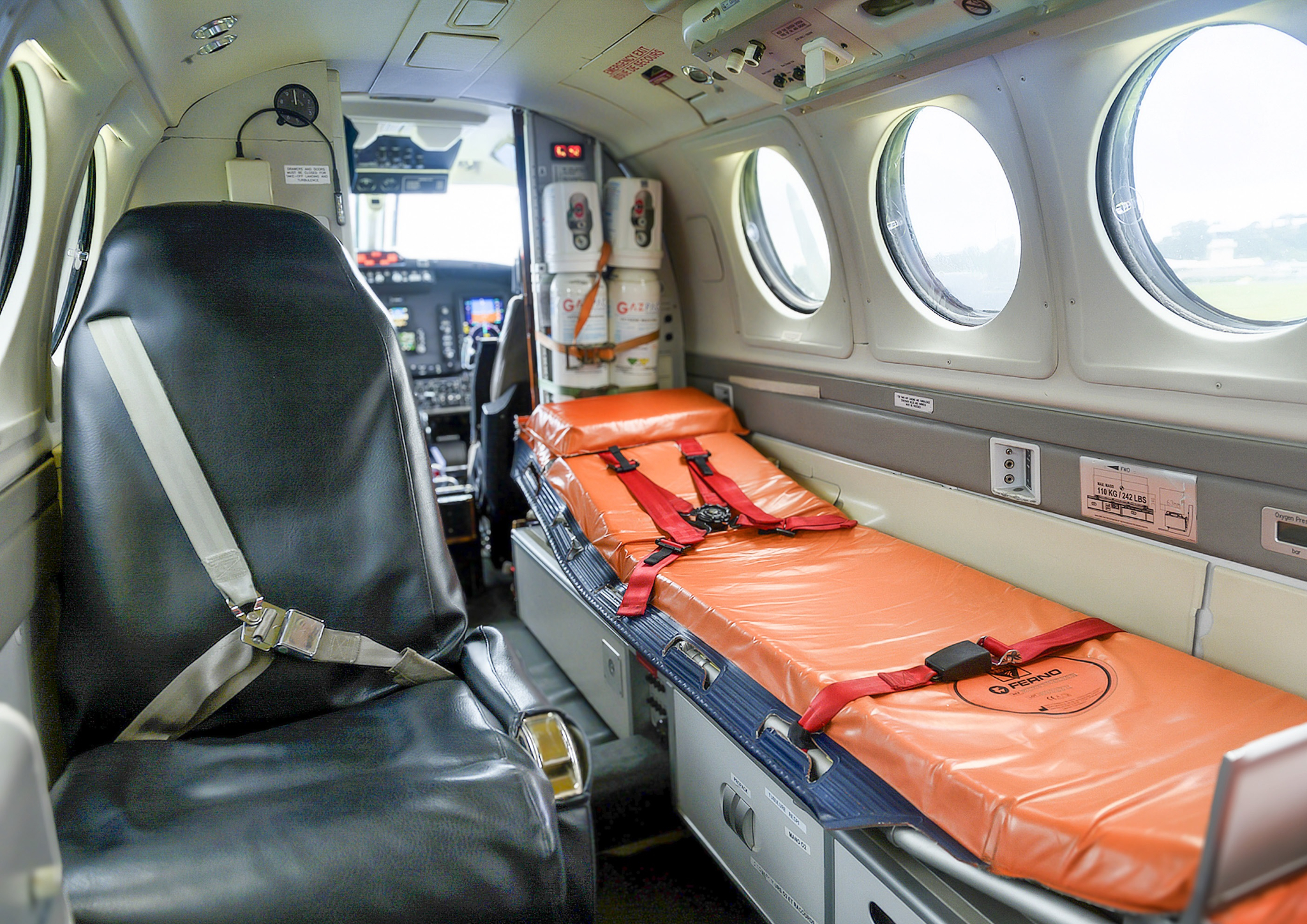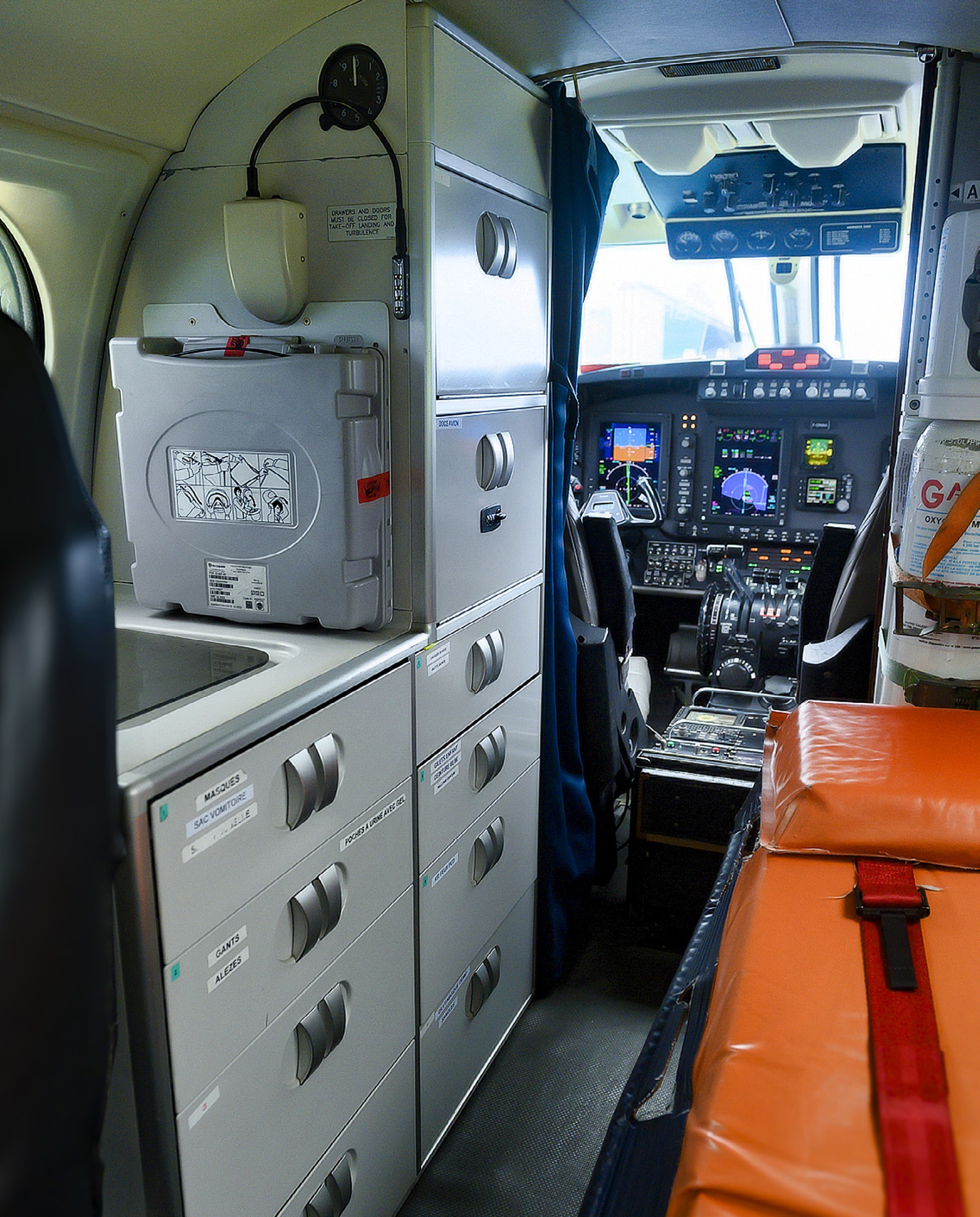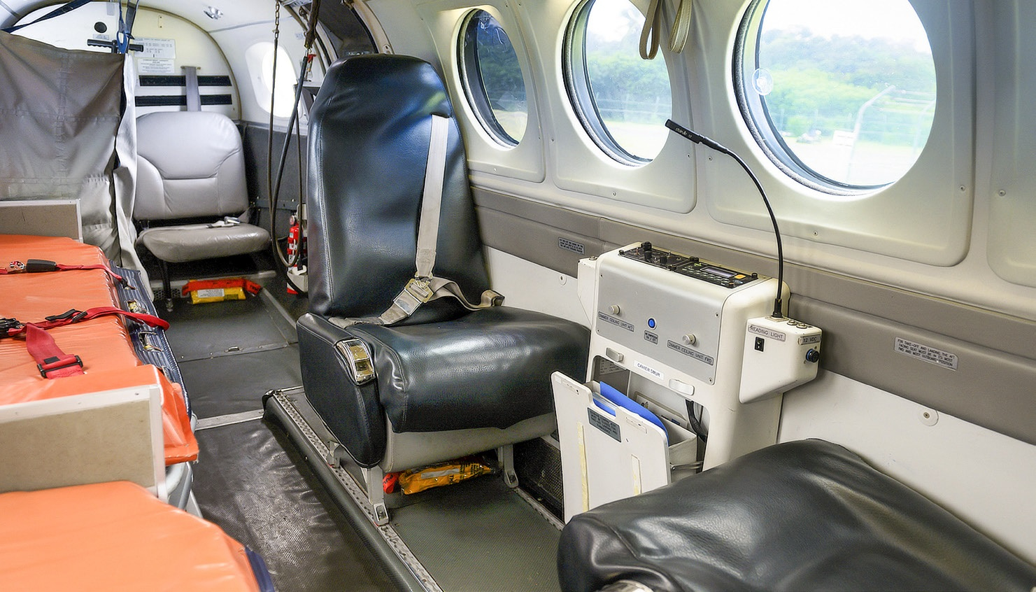 - Interior includes Aerolite medical kit, crew console unit, and various storage options