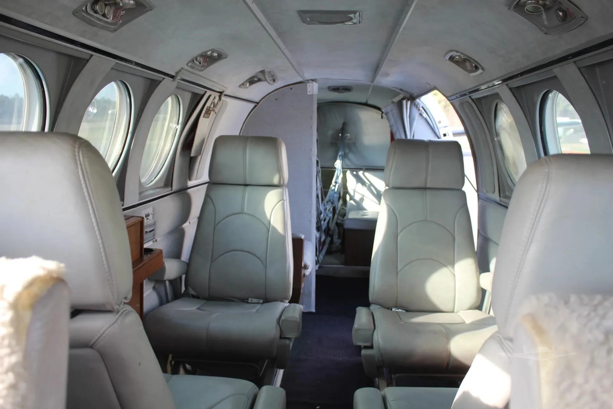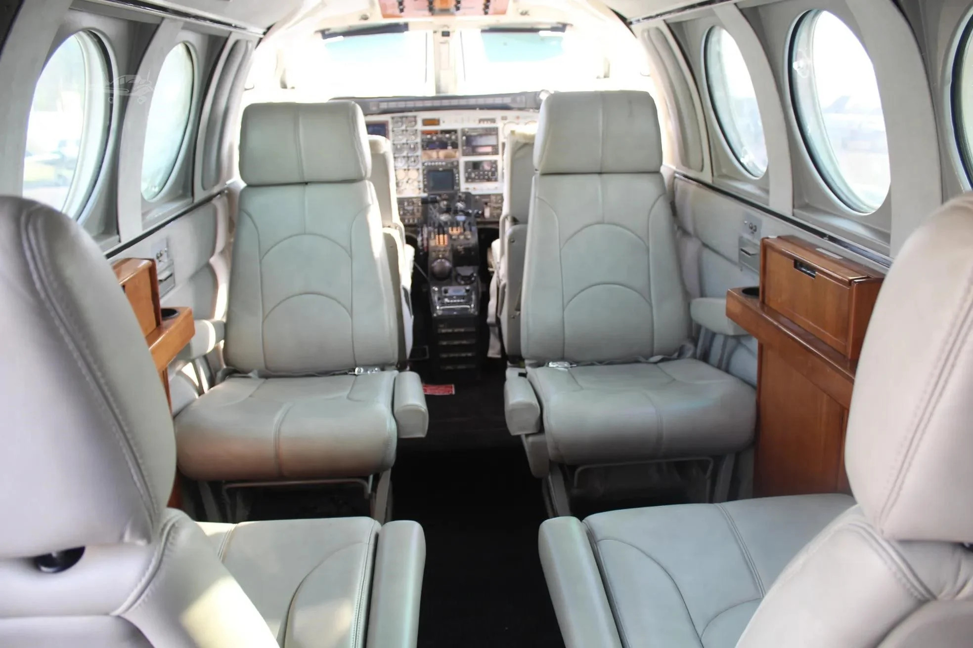 The C90 cabin is a compact, pressurized environment generally arranged for executive seating with an aft baggage area, depending on configuration. Expect a smaller cross-section than larger King Air models, with a practical layout for short to mid-duration legs. Noise and vibration levels are typical of legacy turboprops and will depend on interior condition, insulation upgrades, and prop/engine configuration.