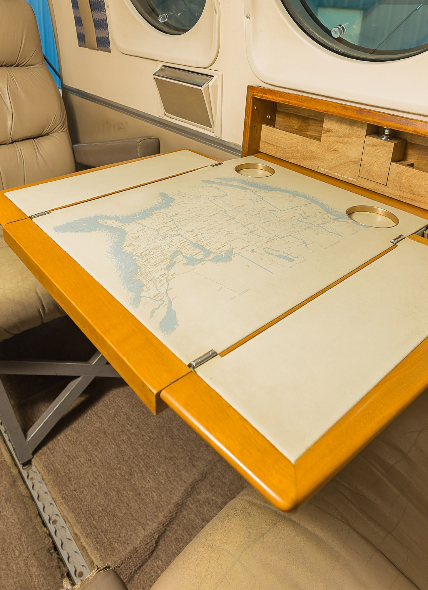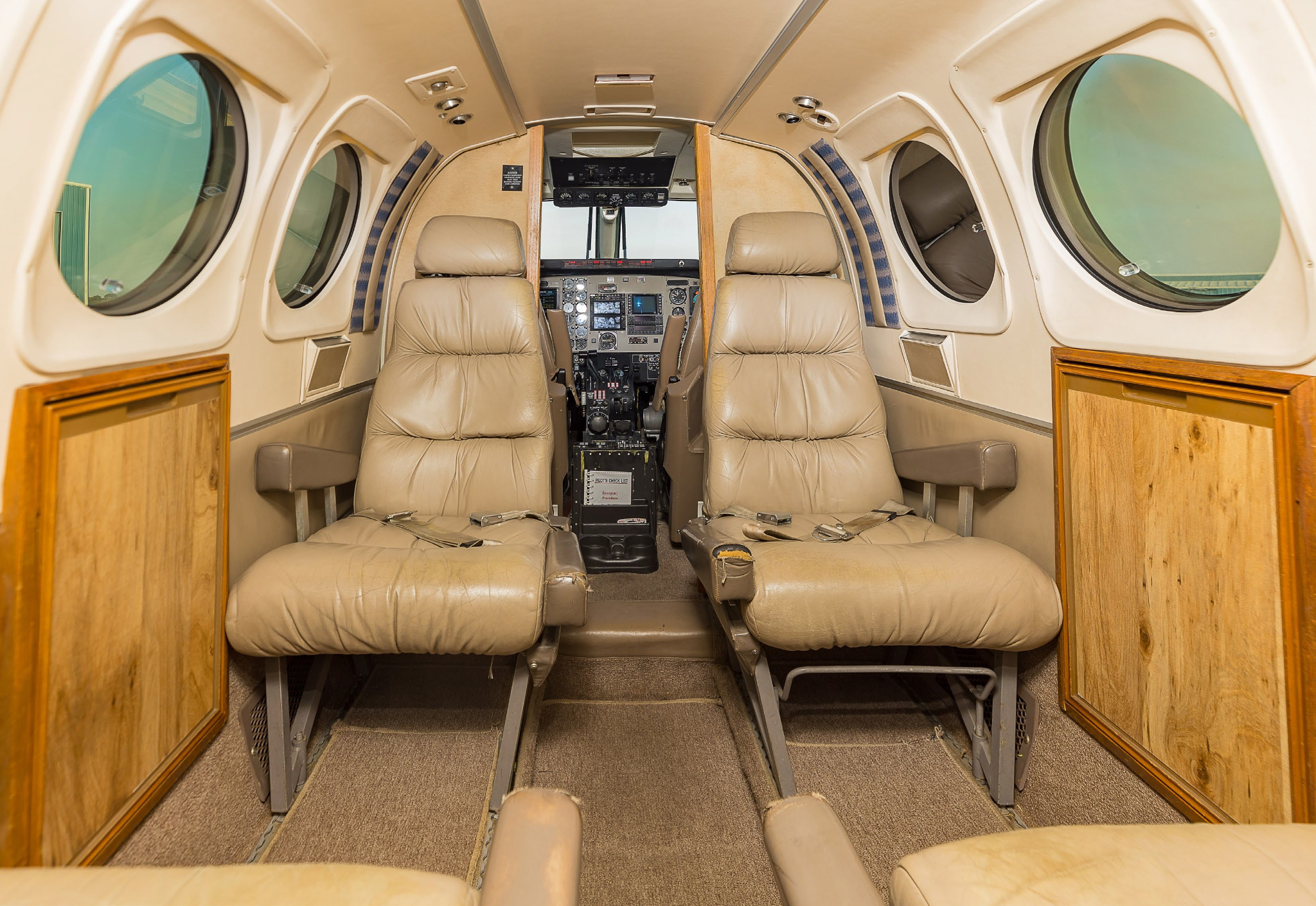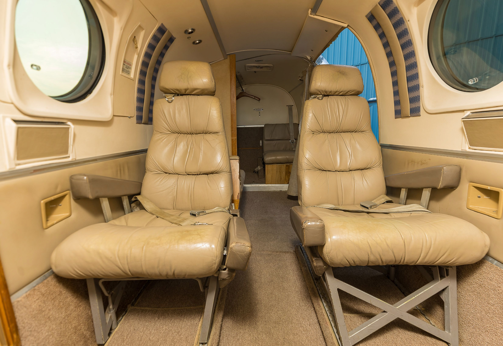 The C90A offers a compact, pressurized cabin typically arranged for executive transport with club seating and an aft refreshment/utility area depending on the interior. Expect a functional cabin suited to small groups rather than a stand-up environment. Noise and vibration are characteristic of turboprops; interior condition, insulation upgrades, and propeller/engine maintenance state can materially influence perceived comfort.