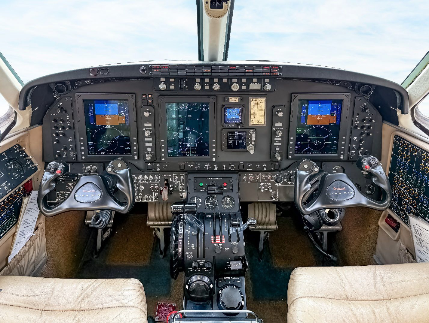 - Avionics: Collins Pro Line 21, dual Collins VHF-4000 radios, ADS-B equipped, Jeppesen electronic charts, TCAS I, weather radar.