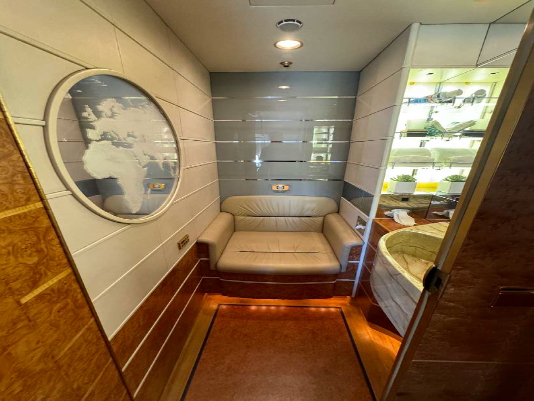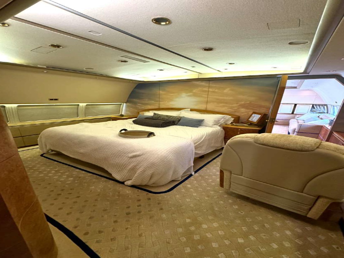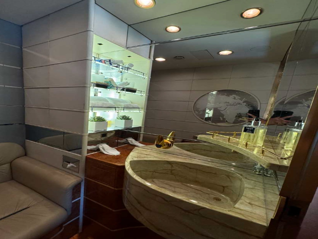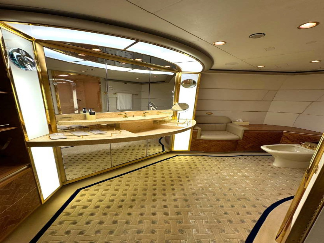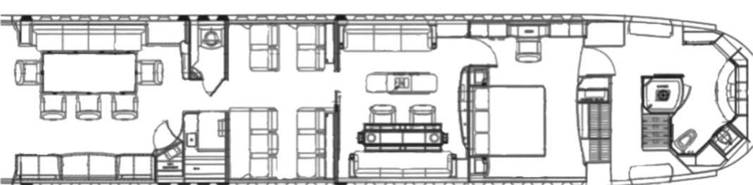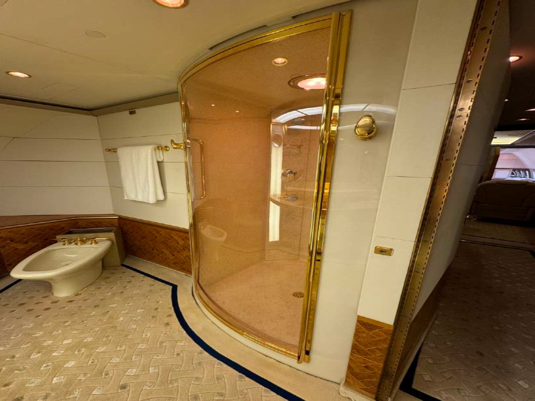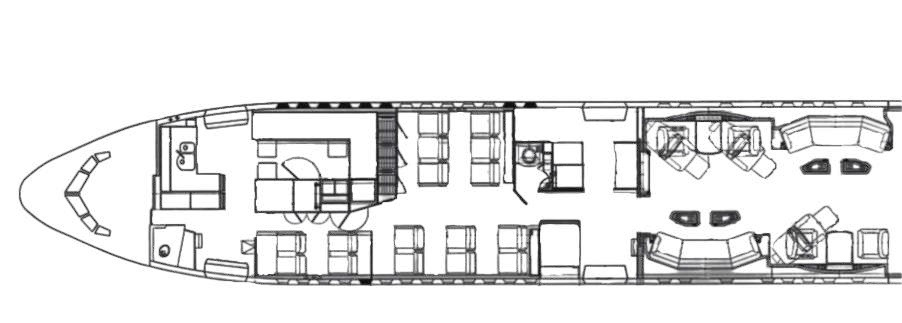 - Lavatories: Two mid cabin and one aft cabin