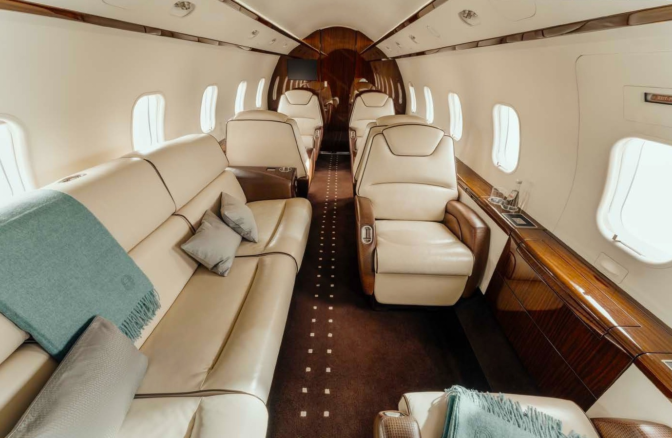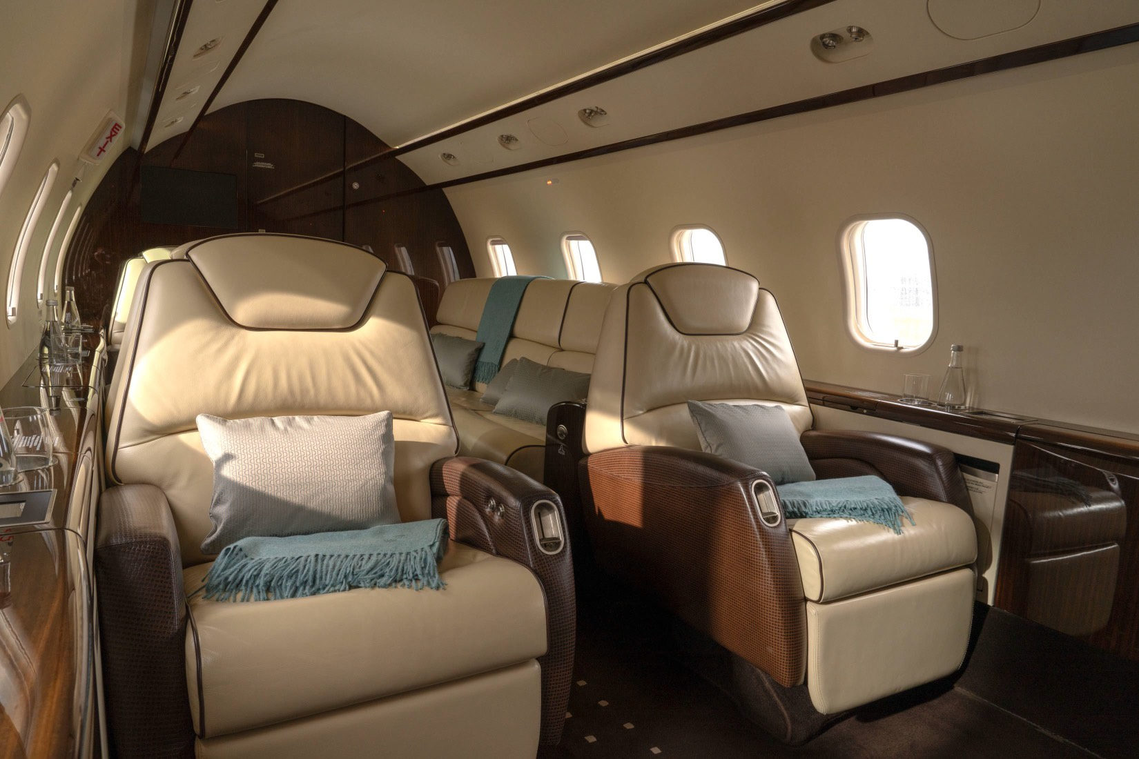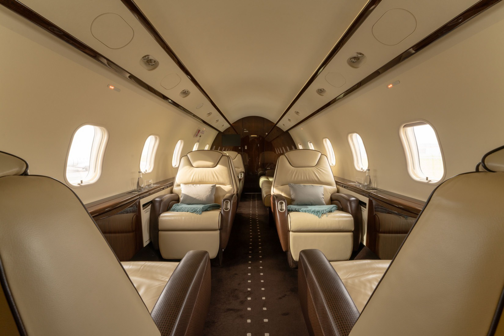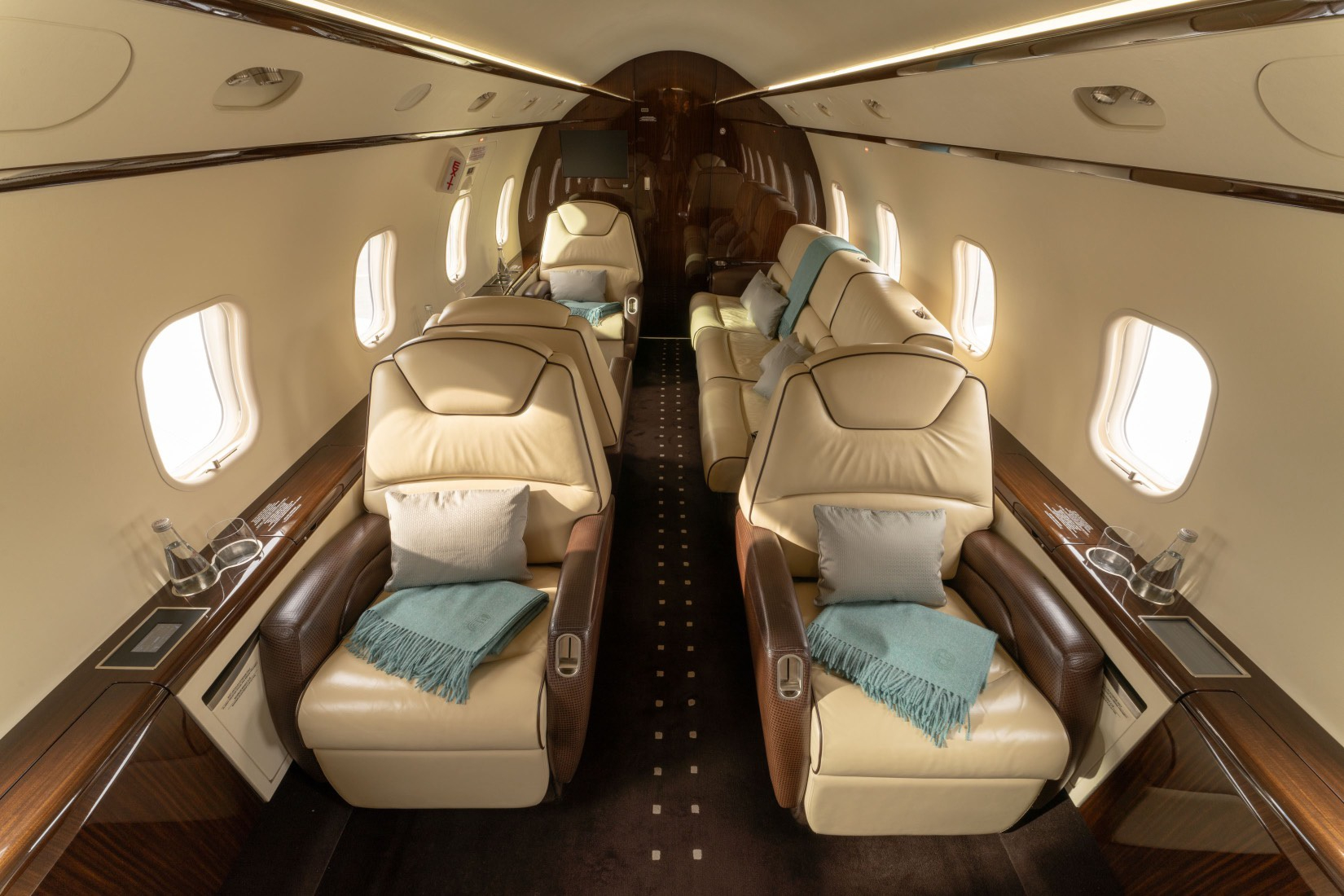 The cabin is arranged to feel closer to a large-cabin environment than many midsize jets, with a flat floor, a wide aisle, and a baggage compartment that is often accessible in flight. Seating is typically organized to support both conversation and laptop work, and the environment is aimed at keeping fatigue down on longer legs through stable cabin comfort and predictable noise levels for the class.