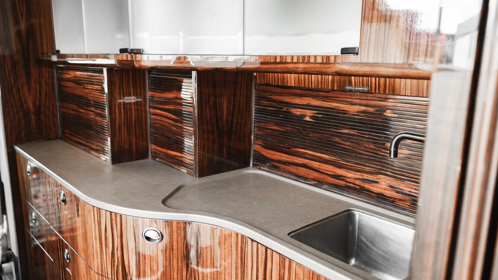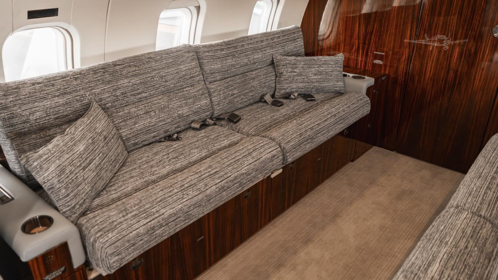 The cabin is known for its width and headroom, supporting a conference-style seating zone and a separate aft area that can be arranged for additional seating or rest. A forward galley and enclosed lavatory are typical, which helps on longer sectors. Baggage space is generally ample for a full passenger load, and the cabin layout supports both work and rest depending on configuration.