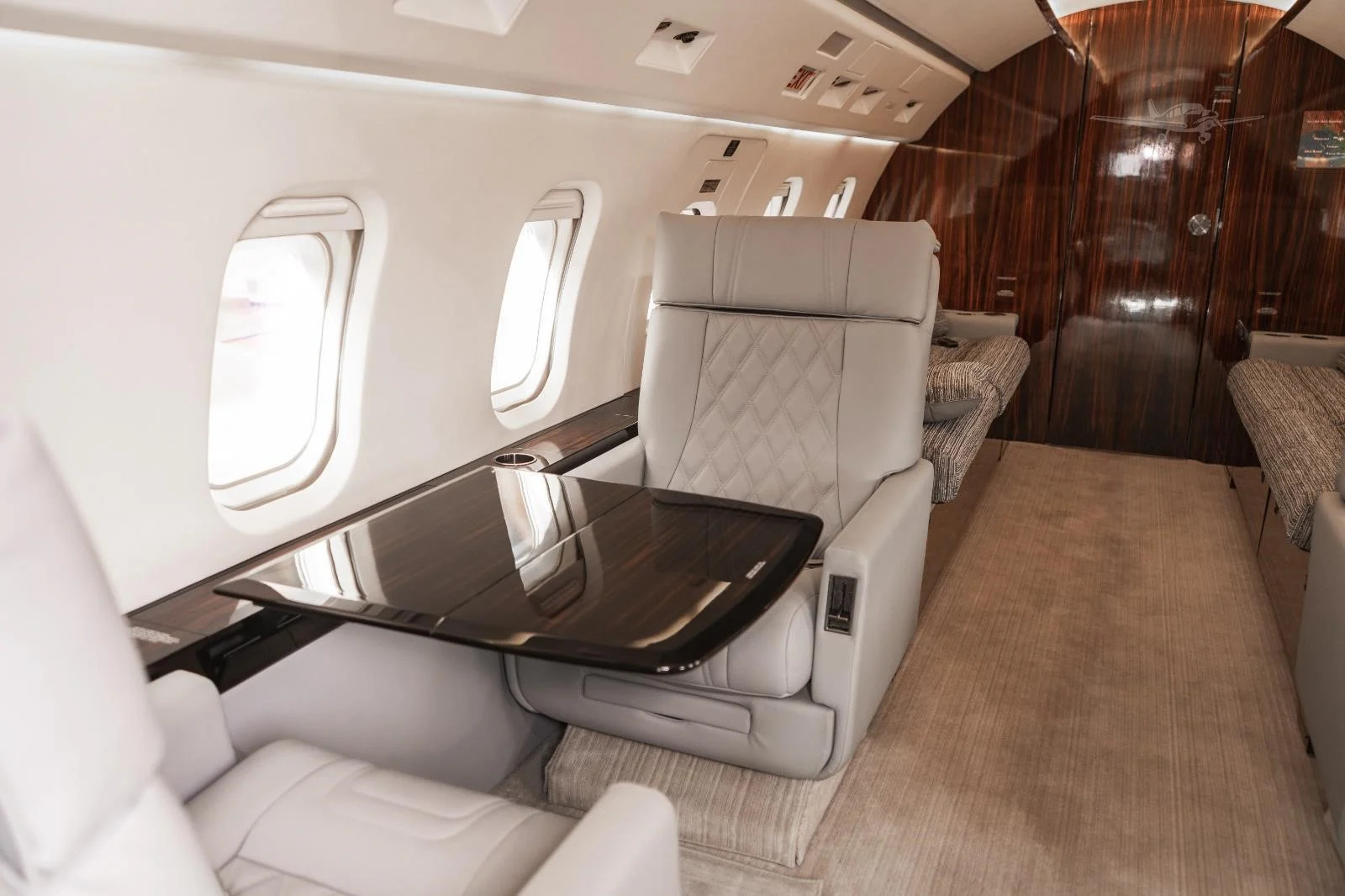 - Interior configuration: Executive, seating for 9, forward 4-place club, dual aft divans, private aft lavatory, forward galley