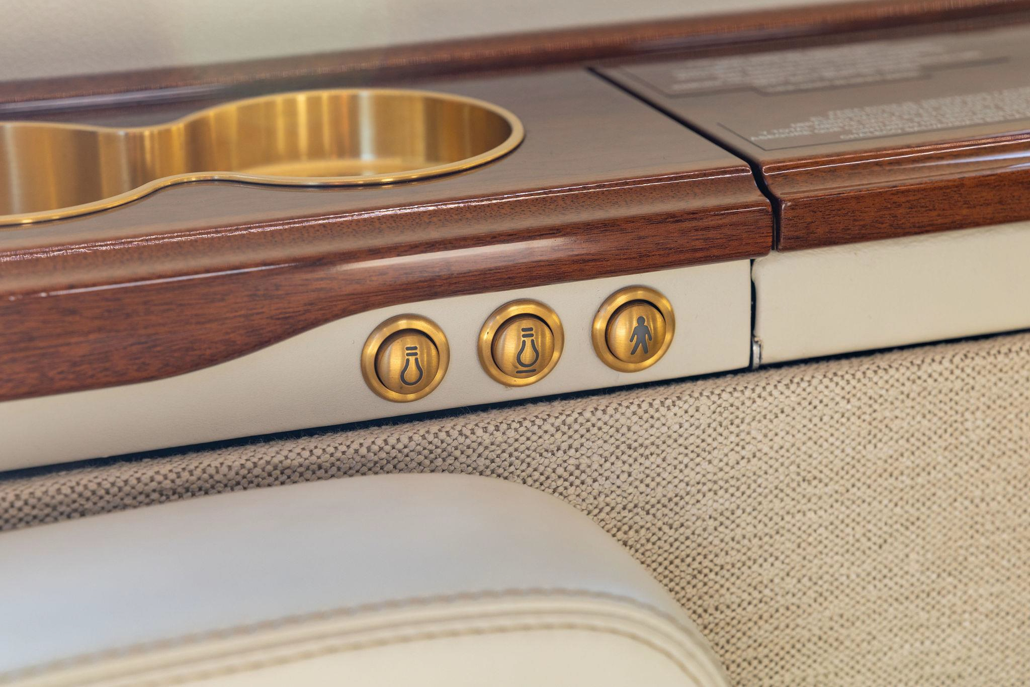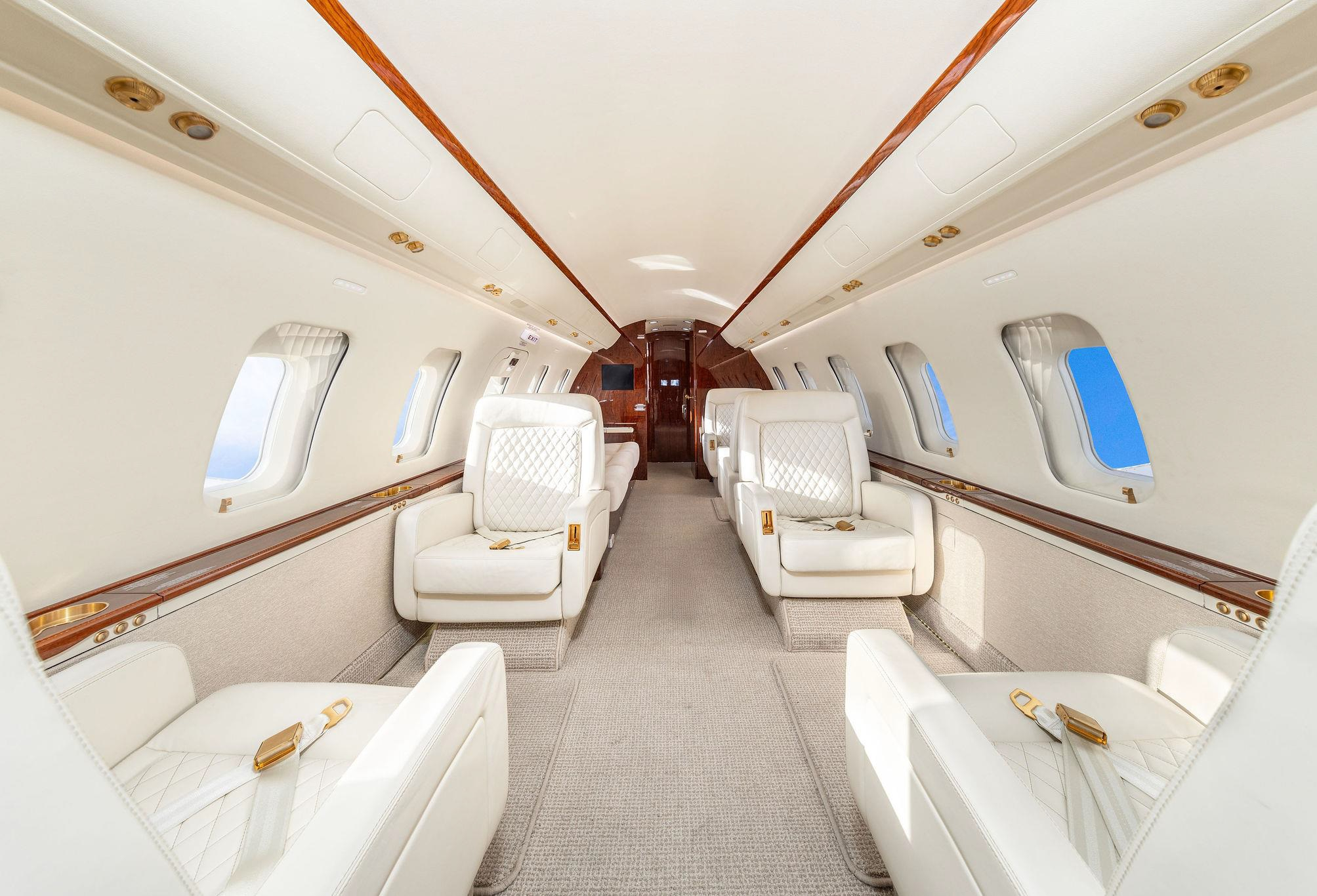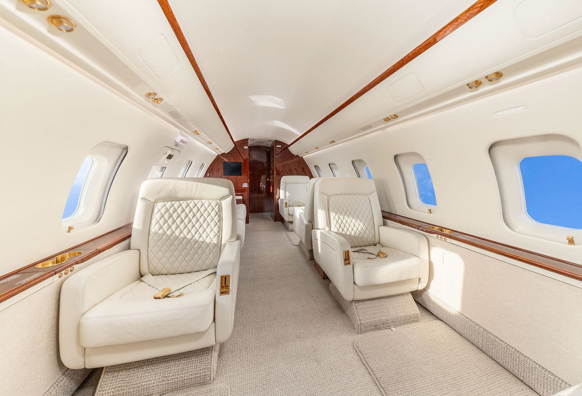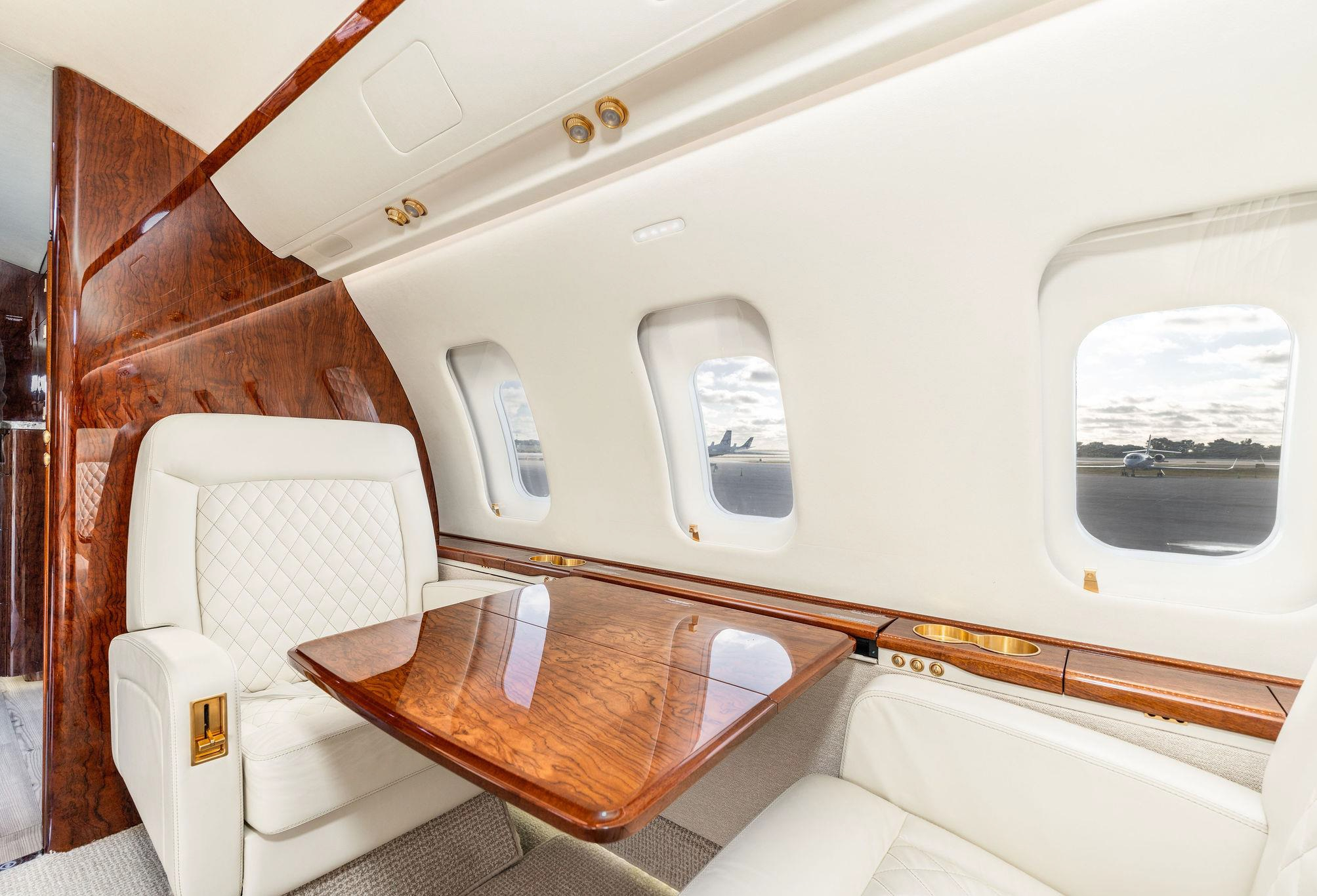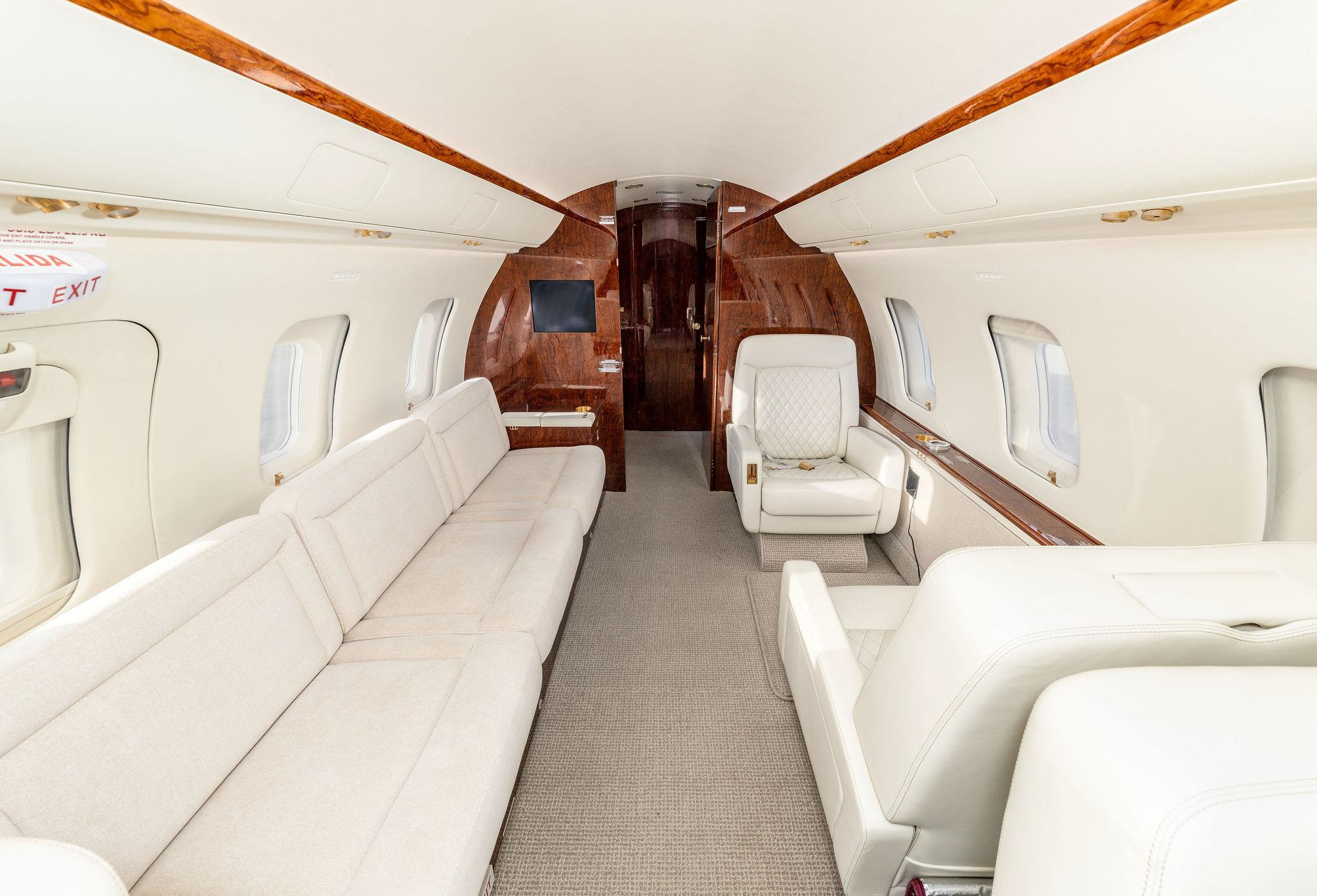 - Executive configuration with 9 seats: Forward 4-place club, aft 2-place club opposite 3-place divan