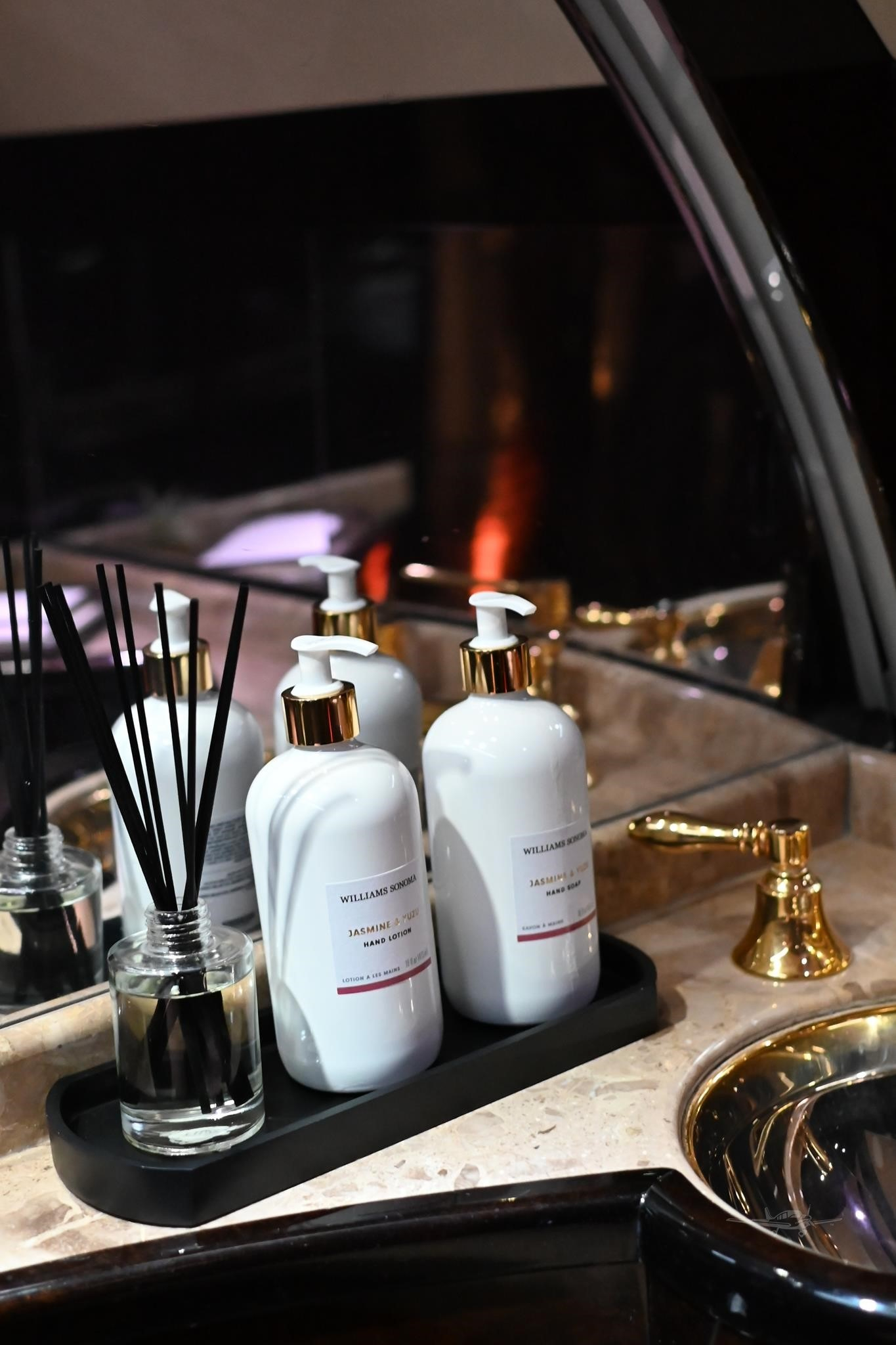 - Lavatories: Forward and aft with hot/cold water and vanity