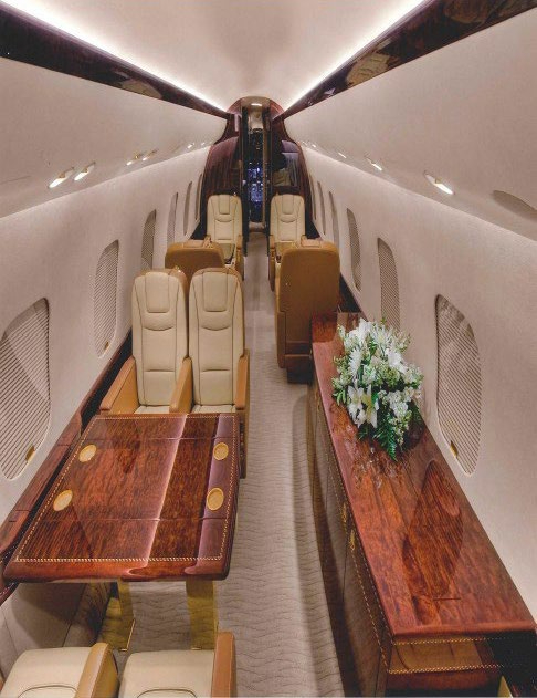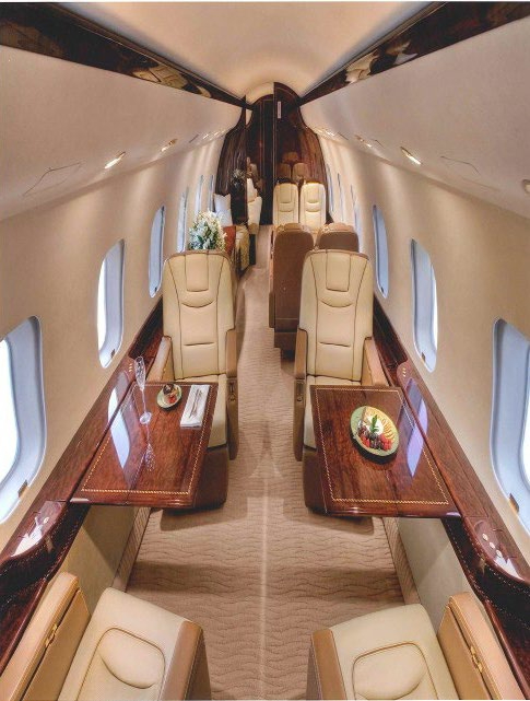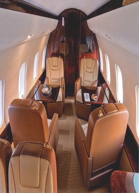 The Global 5000 uses Bombardier’s wide Global-family cabin cross-section, supporting multiple seating zones, a full galley, and an enclosed lavatory. The cabin is designed for long-duration comfort with a flat floor, substantial baggage capacity, and flexible furniture layouts that can emphasize conferencing, lounge seating, or sleep provisions depending on configuration. Noise levels are generally low for the segment, and the large windows and interior volume support a less fatiguing environment on long legs.