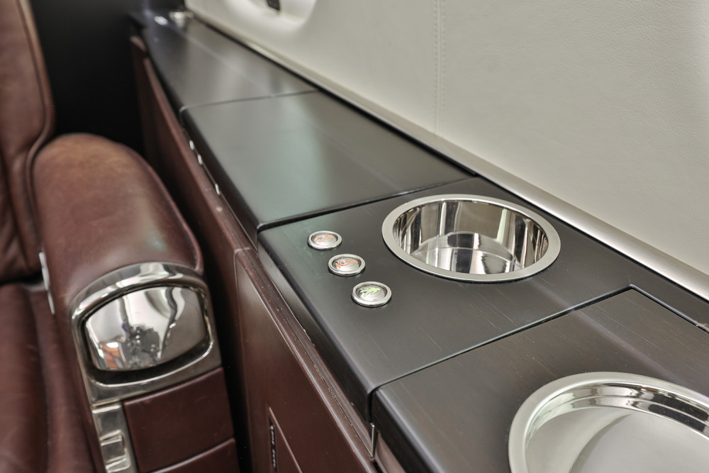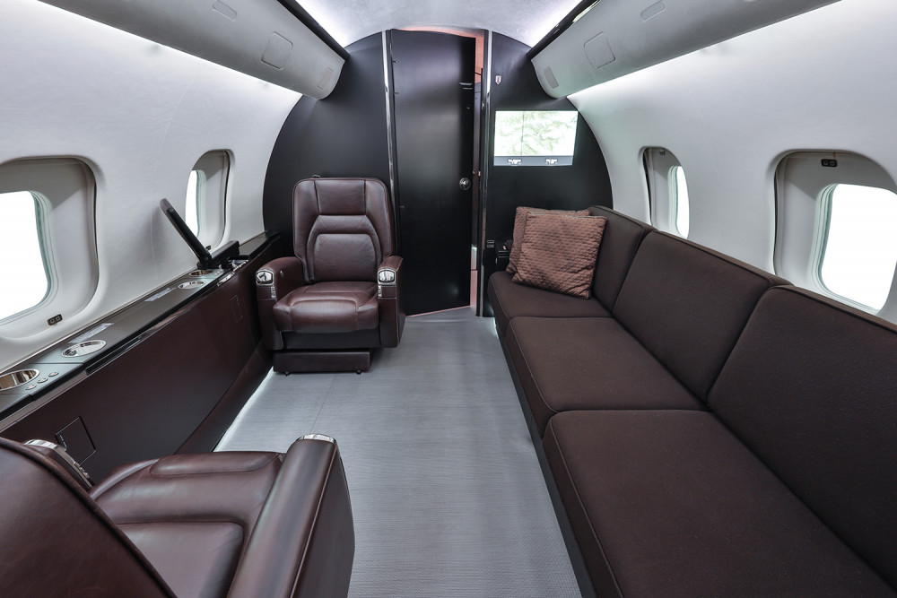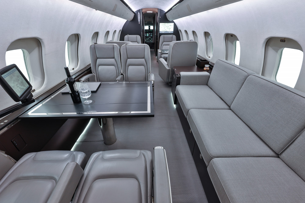 The Global 5000 uses Bombardier’s wide Global-family cabin cross-section, supporting multiple seating zones, a full galley, and an enclosed lavatory. The cabin is designed for long-duration comfort with a flat floor, substantial baggage capacity, and flexible furniture layouts that can emphasize conferencing, lounge seating, or sleep provisions depending on configuration. Noise levels are generally low for the segment, and the large windows and interior volume support a less fatiguing environment on long legs.