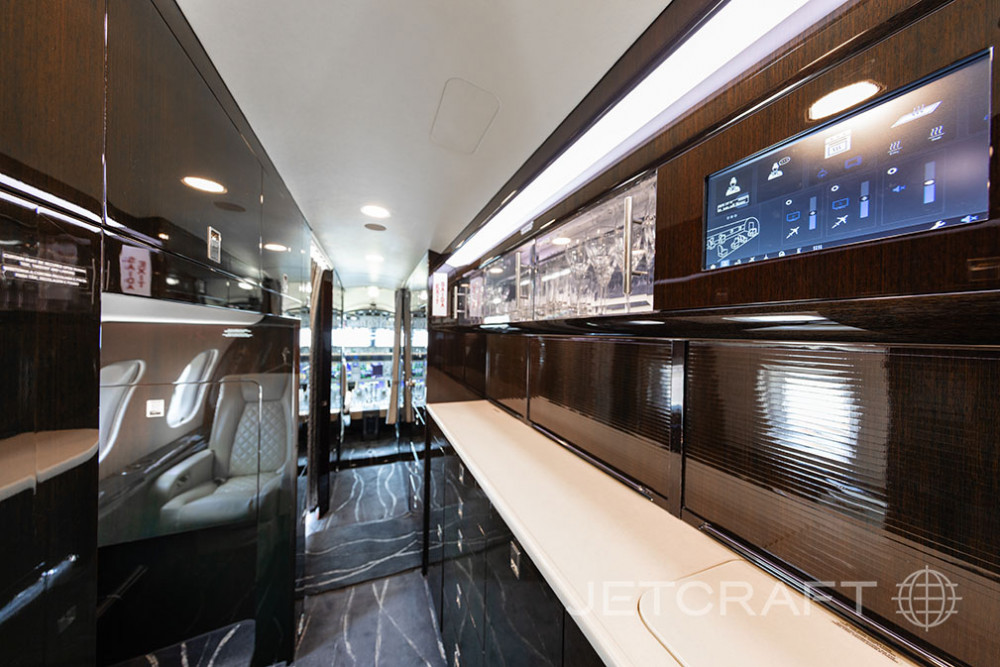 Cabin design emphasizes long-duration comfort: a full-height, wide cabin arranged into distinct zones for conferencing, dining, and rest. Typical layouts support in-flight productivity with a dedicated work area, followed by a lounge/dining section, and an aft rest space that can be configured for crew and/or passengers. Noise levels and pressurization are oriented toward reducing fatigue on long flights, and baggage access is designed for long-trip loads.