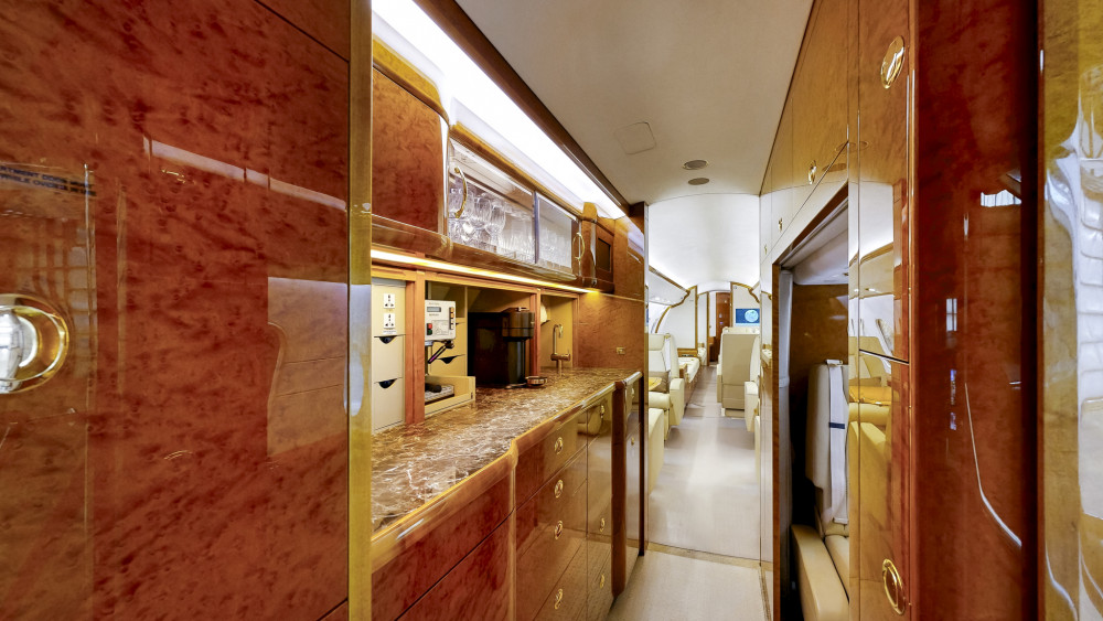 Cabin design emphasizes long-duration comfort: a full-height, wide cabin arranged into distinct zones for conferencing, dining, and rest. Typical layouts support in-flight productivity with a dedicated work area, followed by a lounge/dining section, and an aft rest space that can be configured for crew and/or passengers. Noise levels and pressurization are oriented toward reducing fatigue on long flights, and baggage access is designed for long-trip loads.