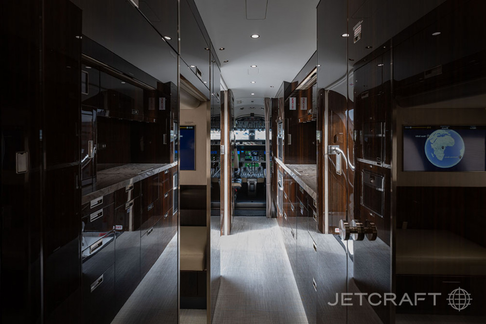 The cabin is arranged as a true multi-zone environment, commonly offering separate areas for conference-style work, lounge seating, and dedicated rest. A full-size galley and multiple lavatory options are typical, supporting long-duration service. Ride quality and cabin altitude management are key parts of the long-range comfort story, and baggage access and stowage are generally planned for extended trips with more luggage.