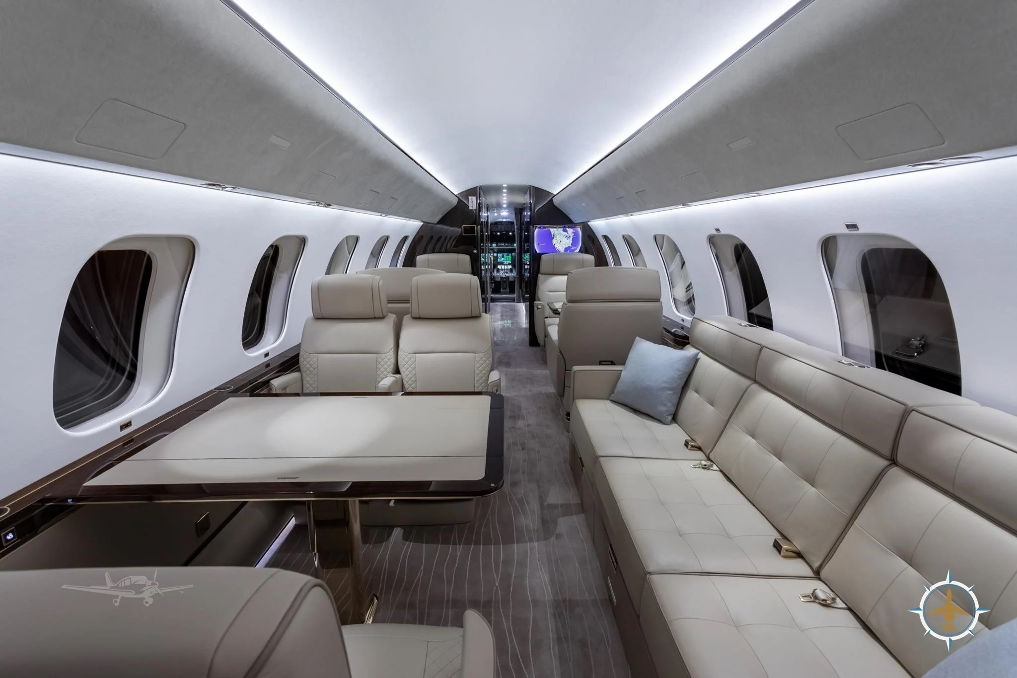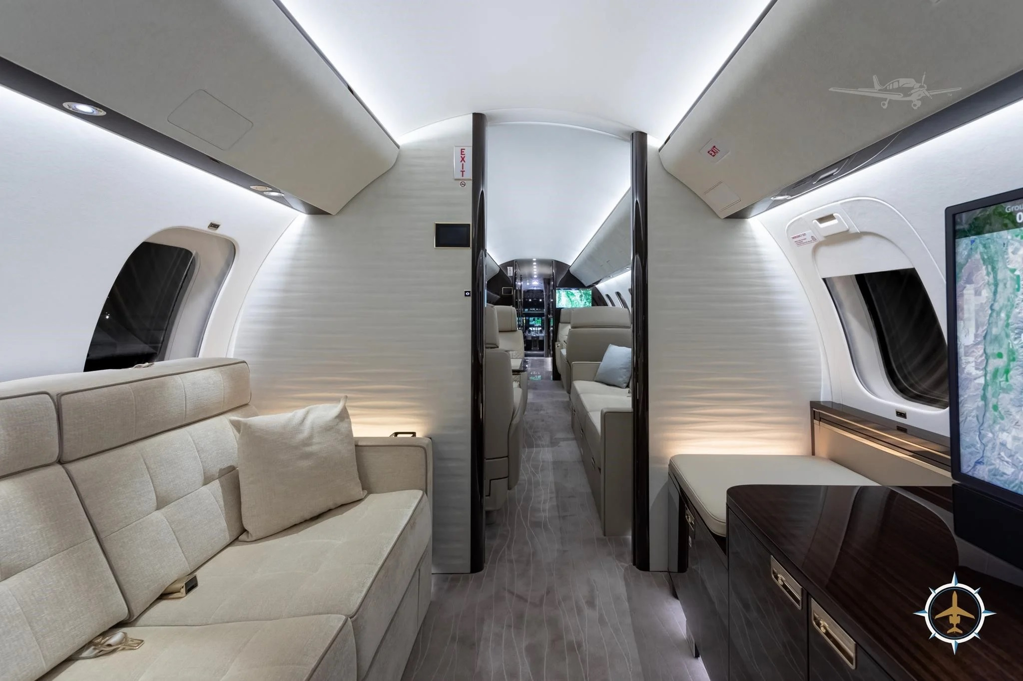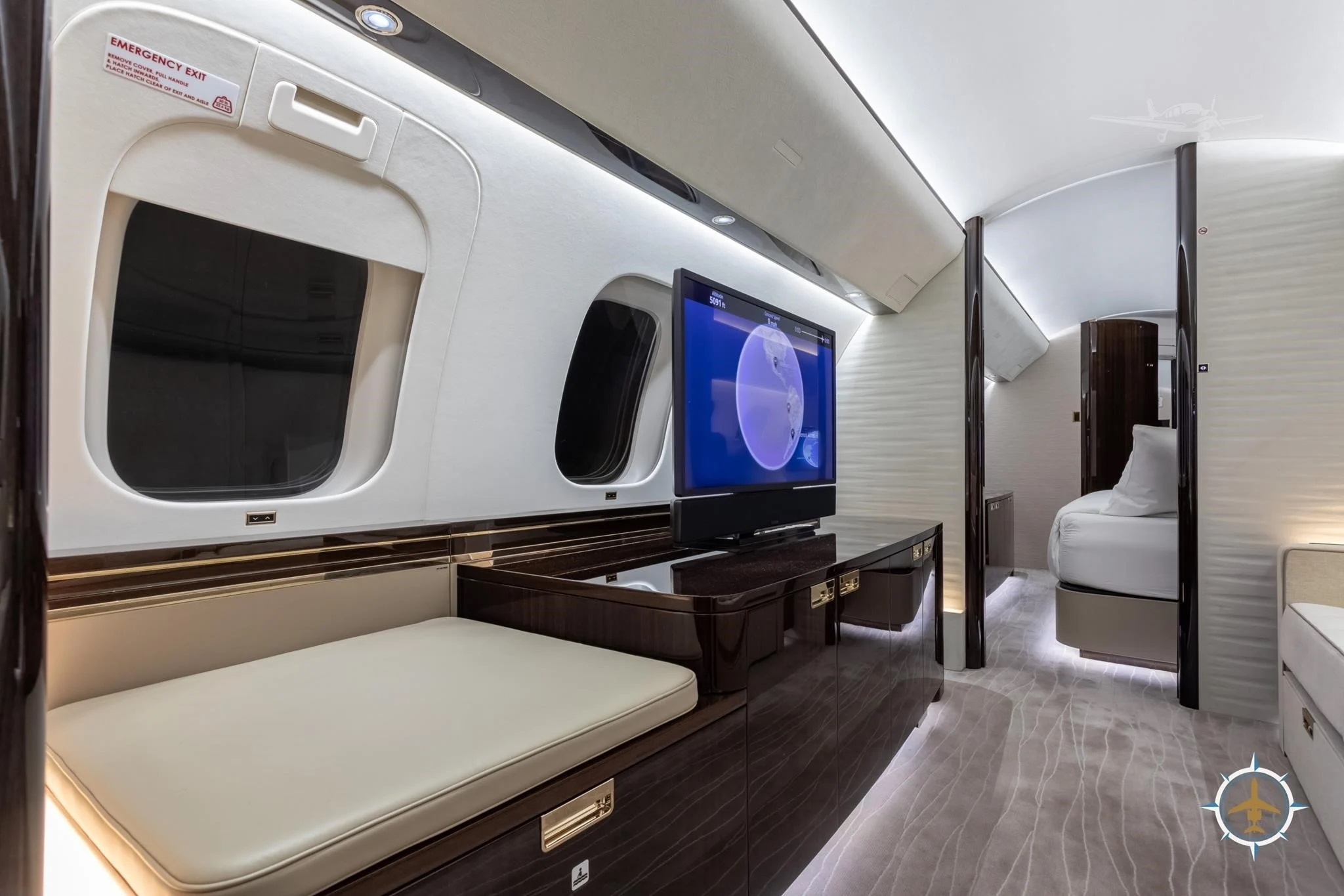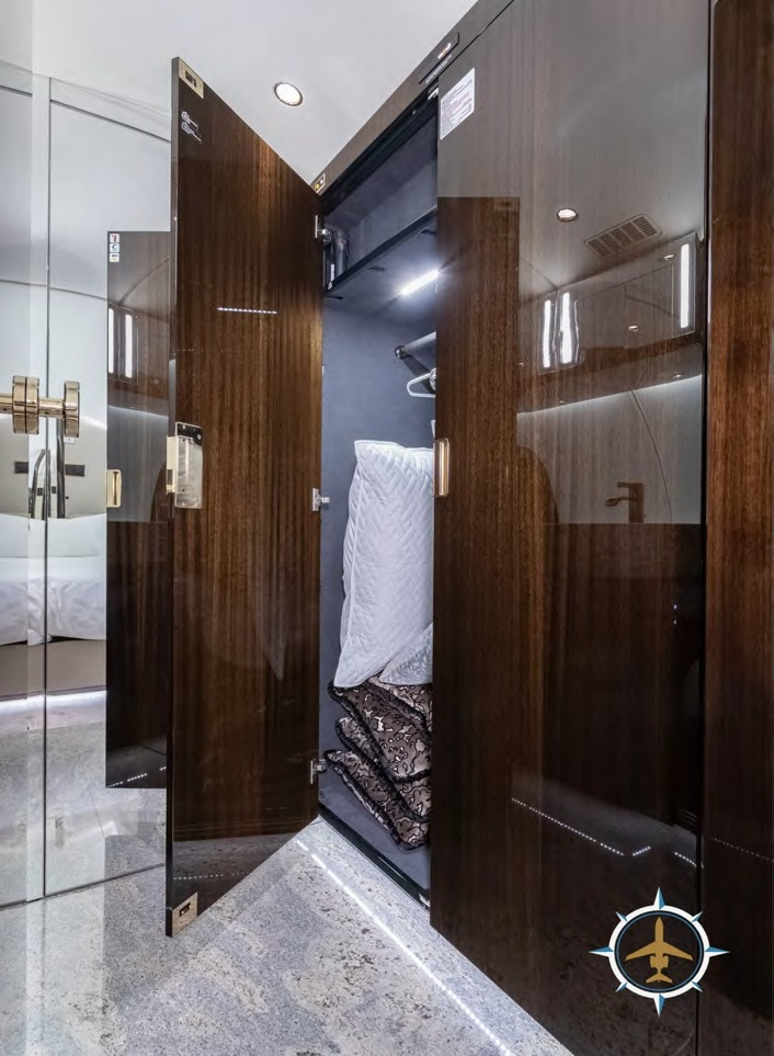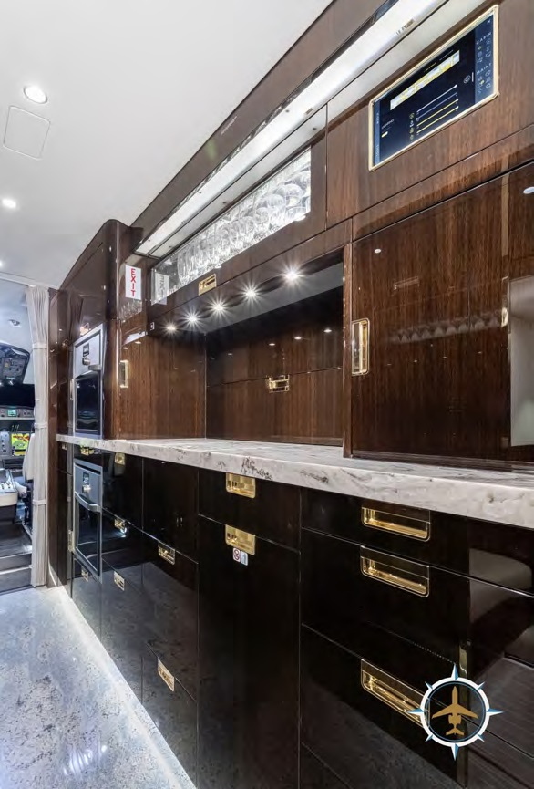 - Entertainment: Multiple HD monitors, cabin management system with in-flight entertainment, Wi-Fi