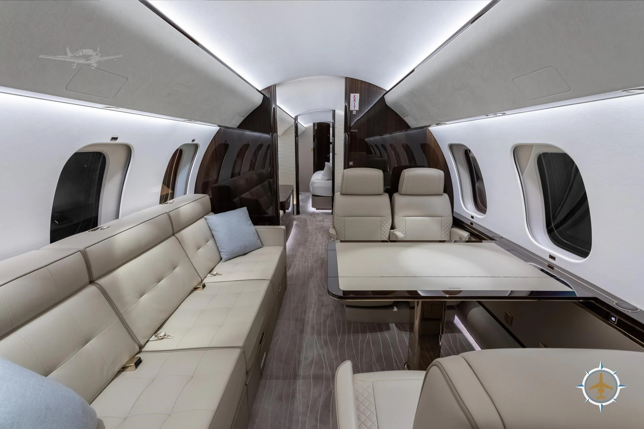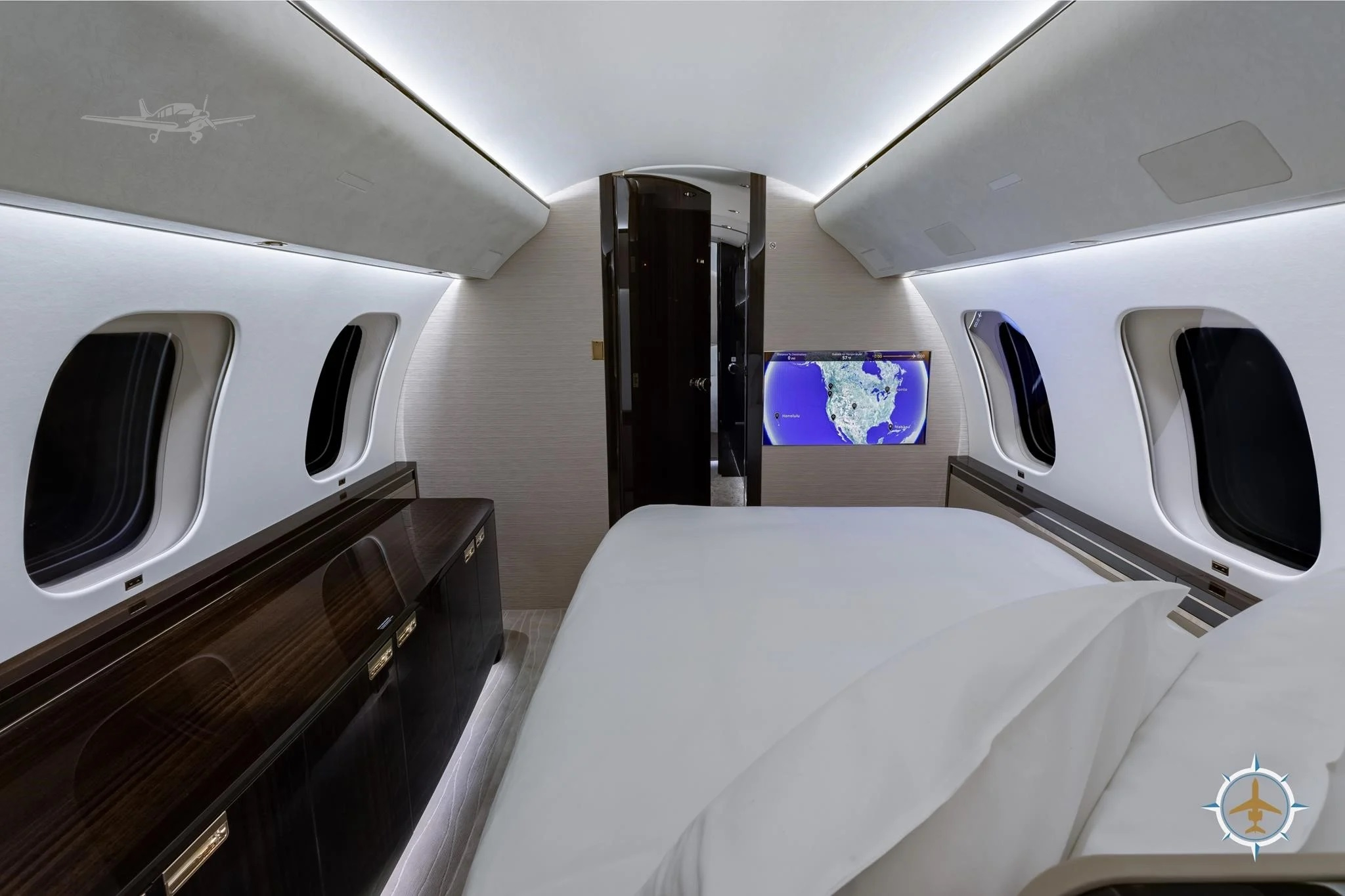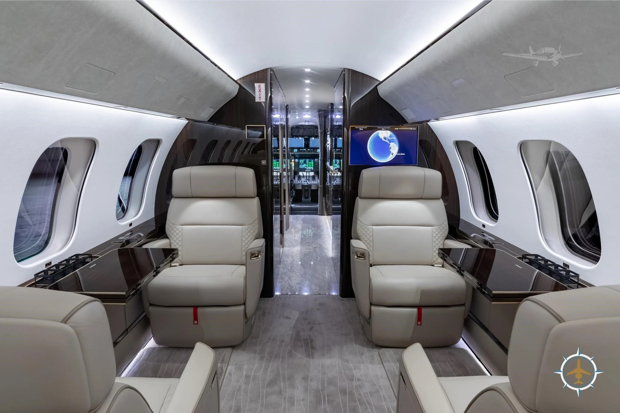 - Entertainment: Multiple HD monitors, cabin management system with in-flight entertainment, Wi-Fi
