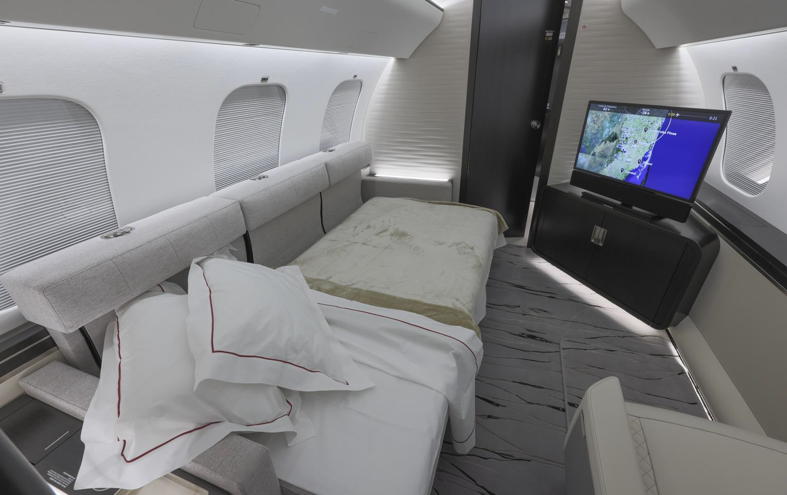 - Crew Rest: Yes, with private lavatory and 24” HD monitor