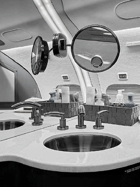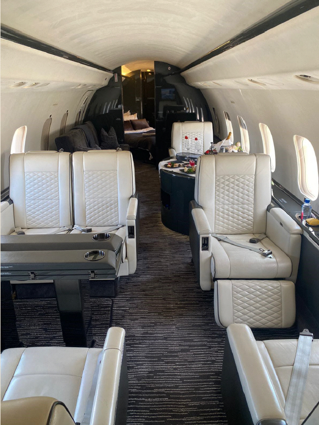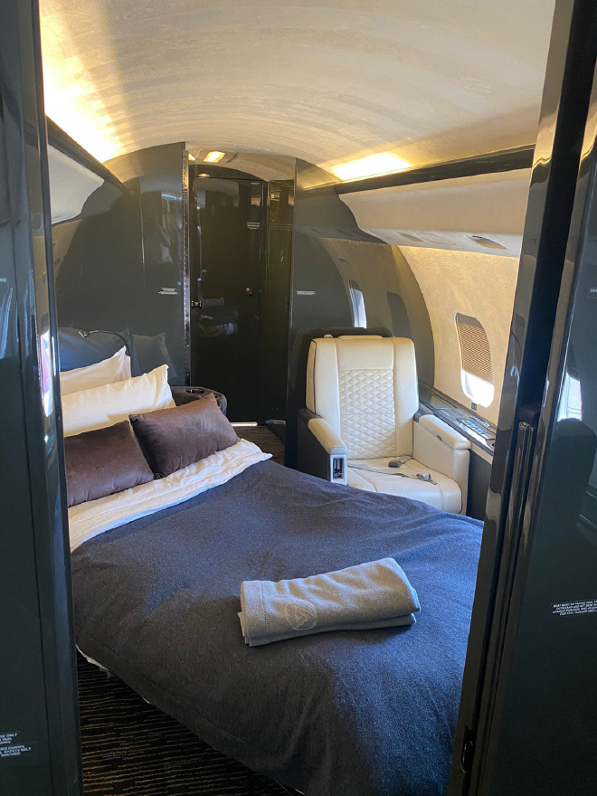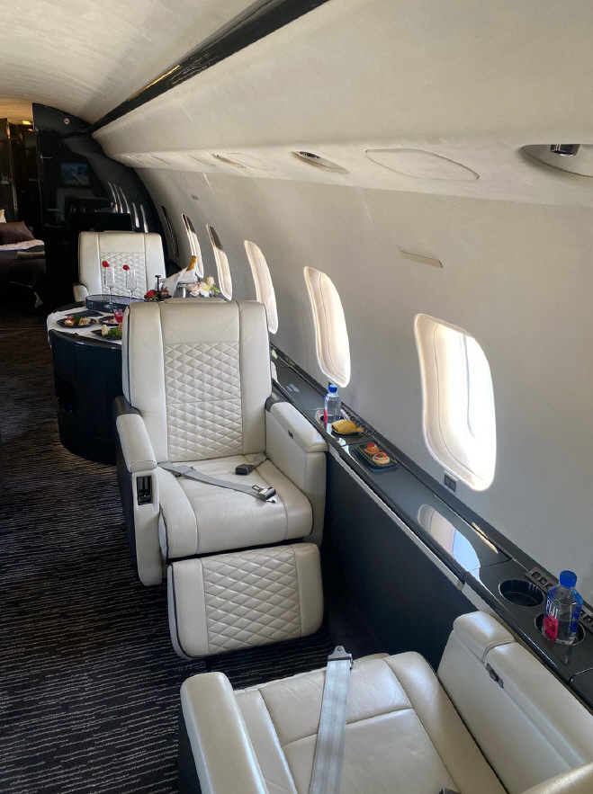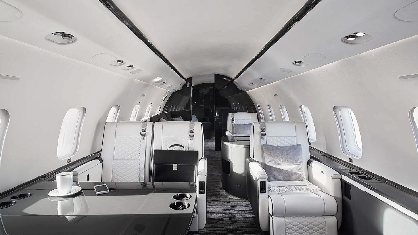 The cabin is typically arranged as a true long-range workspace and rest environment, commonly with distinct seating and lounge/dining zones and an enclosed aft lavatory; many aircraft include a crew rest area to support long duty days. The cross-section supports comfortable aisle movement and a more residential feel than smaller-cabin jets. Baggage access and galley capability vary by configuration and refit history, so specific aircraft layouts should be reviewed closely.