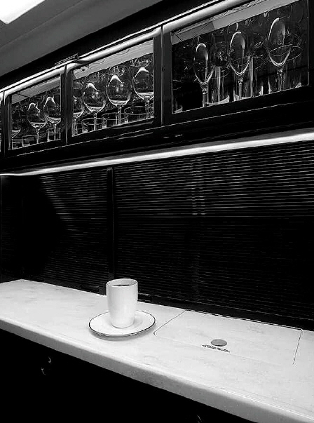 - Mid cabin: Single seat opposing a 3-place berthable divan