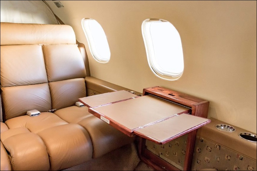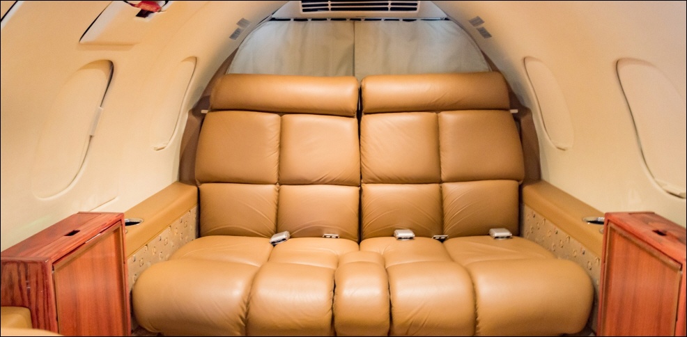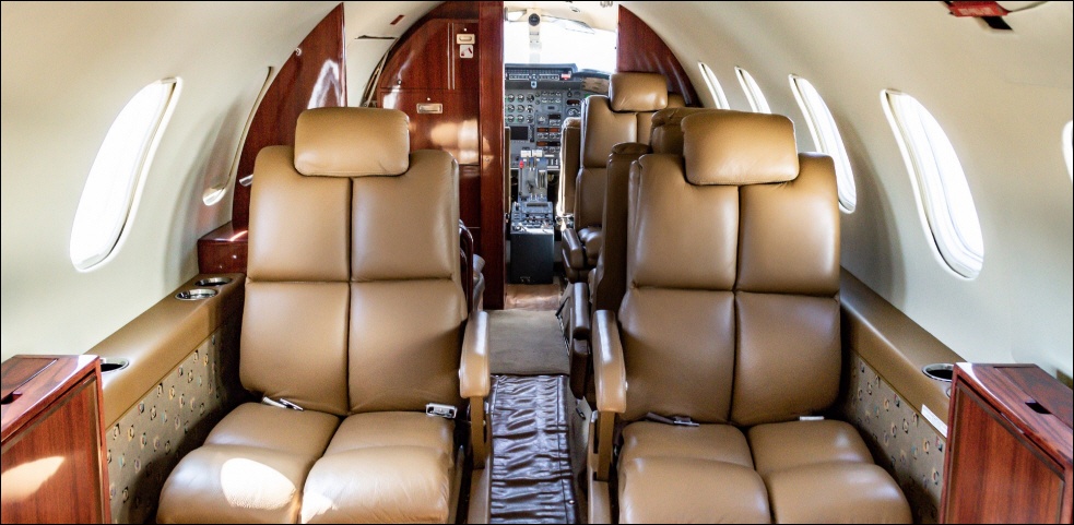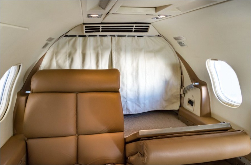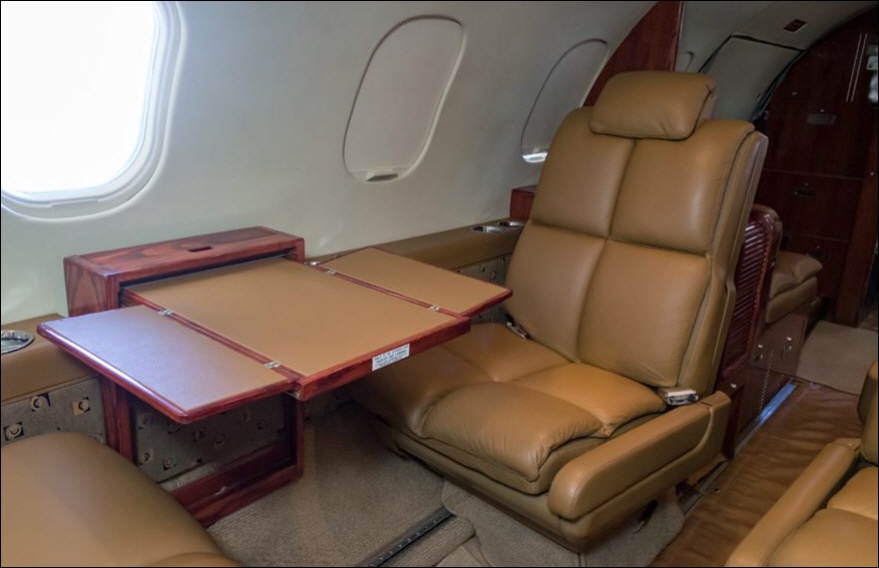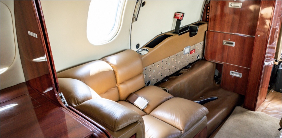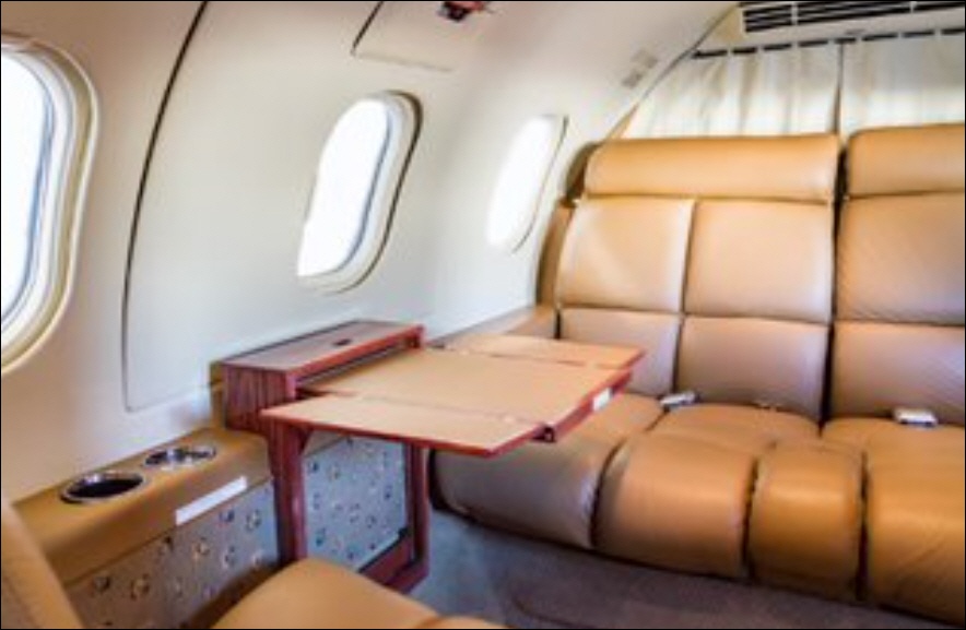 - Interior: Refurbished in 2015, executive configuration, 8 passengers, forward 4-place club, aft 3-place bench, belted forward lav.