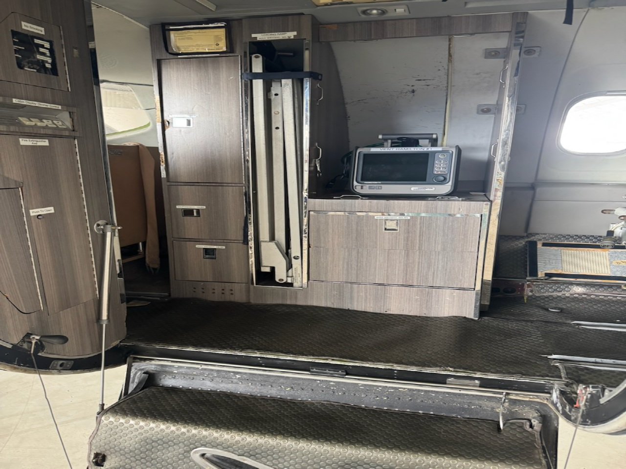 - Additional Equipment: Cargo door, Dee Howard thrust reversers, auxiliary heat, drag chute, medical stretcher, medical loader with storage slot.