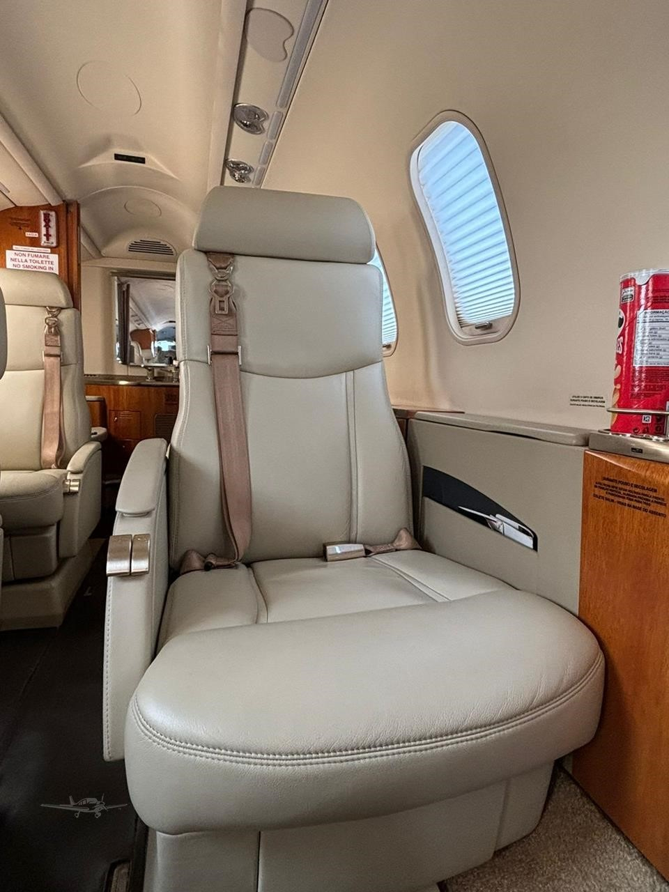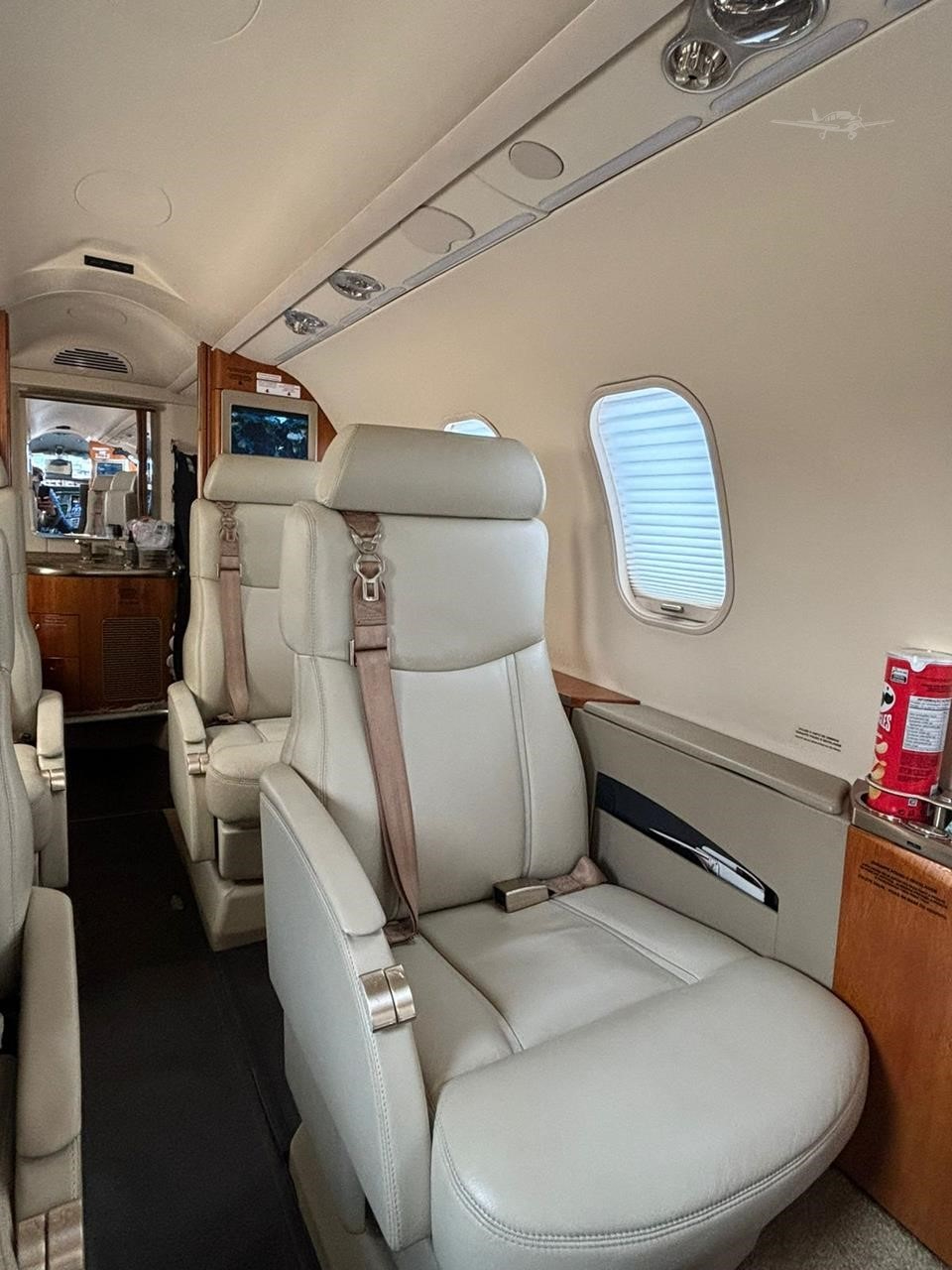 The cabin is a classic light-jet layout: a forward refreshment area and an aft private lavatory, with club seating as the core configuration. Space is adequate for seated work and conversation, but it is not a stand-up cabin and feels most comfortable with smaller groups. Baggage capacity is generally suitable for briefcases and a few soft bags, with packing strategy becoming important as passenger count increases.