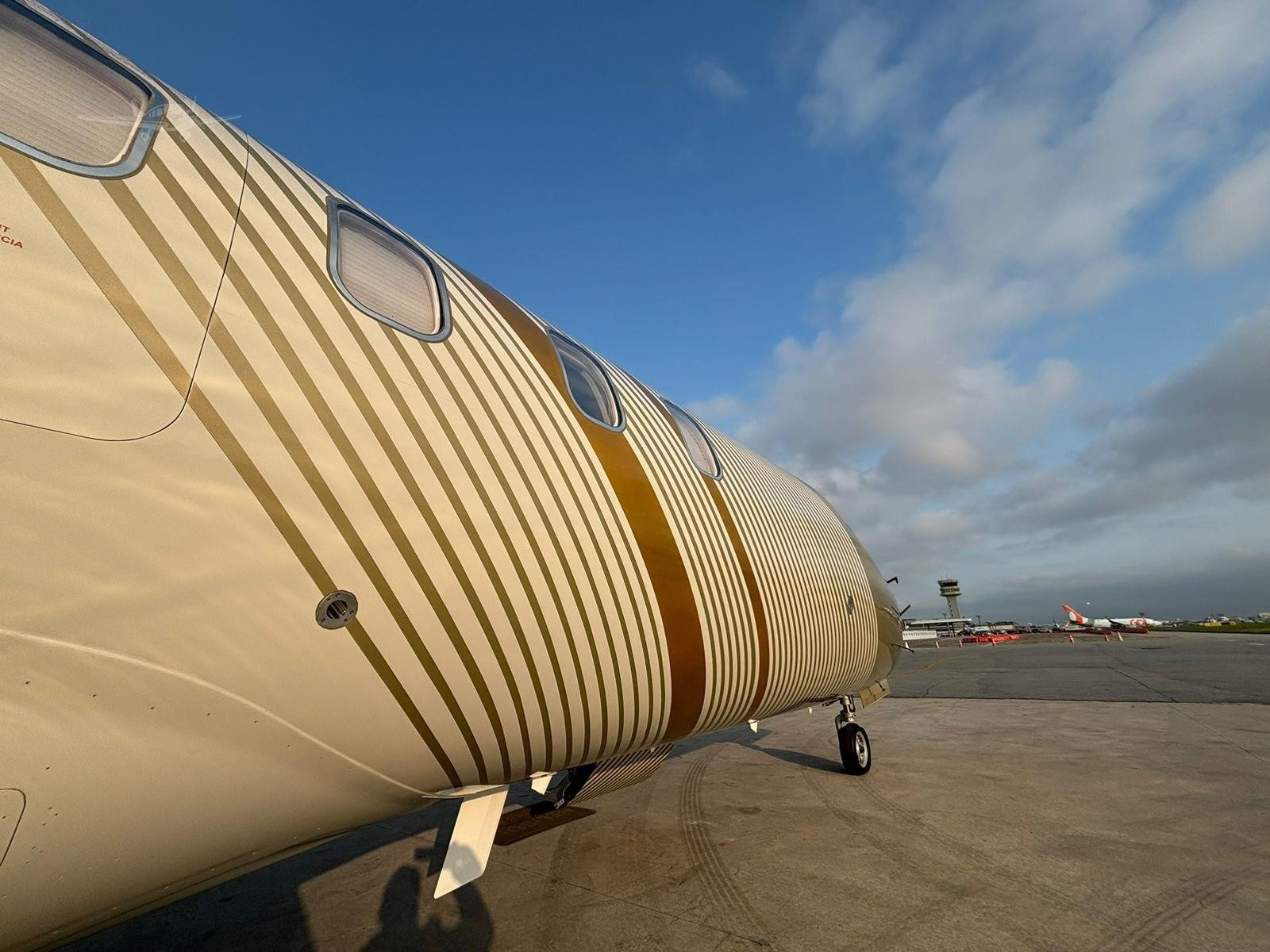 - Interior: Executive configuration for 6 passengers, leather seating, air conditioning (Freon), refreshment equipment (microwave), entertainment (Airshow 410)