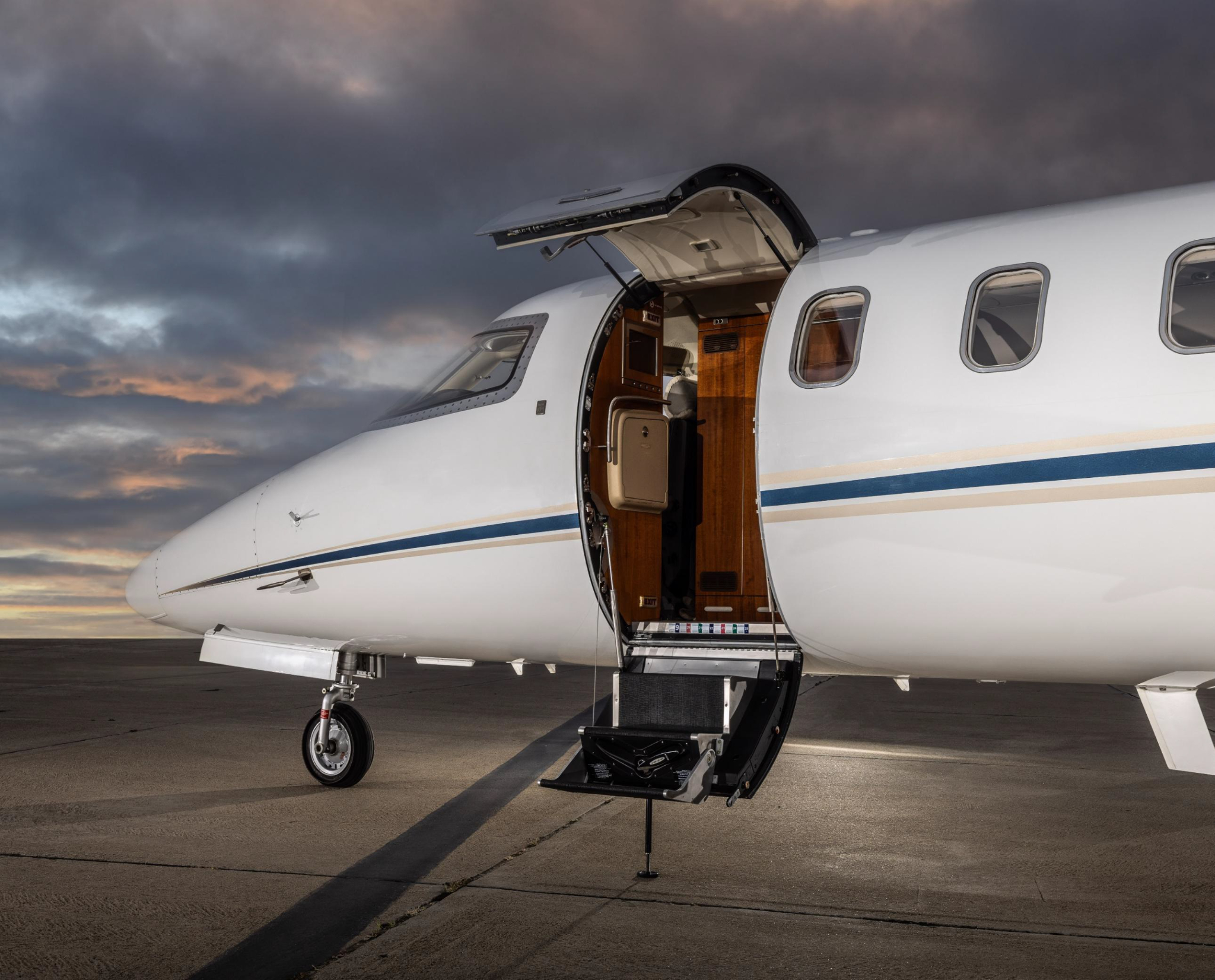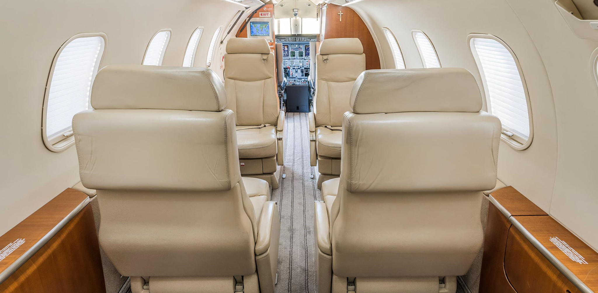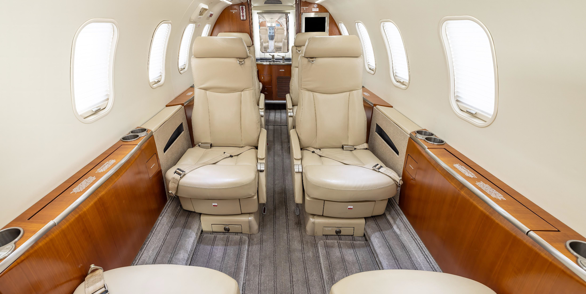 - Interior: Refurbished in 2017 by West Star Aviation; seven-passenger configuration with a forward 4-place club and aft 2-place club; forward galley; belted aft lavatory; Airshow 410 entertainment system; dual 110-volt AC outlets.