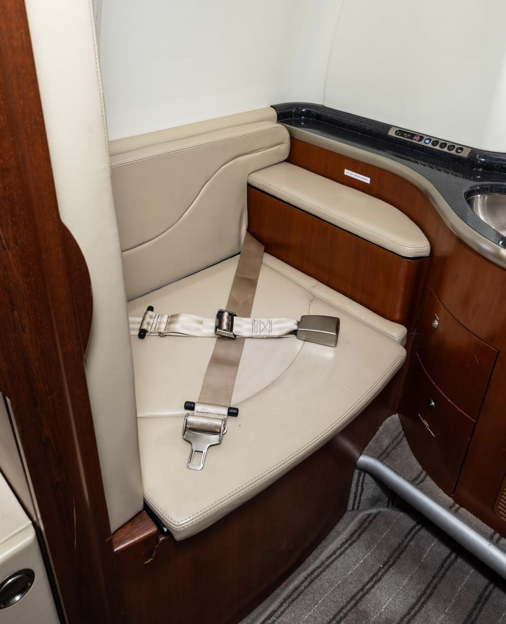 The cabin is a classic light-jet environment: a forward club arrangement is common, with a compact galley/refreshment area and an enclosed lavatory typically located aft. Seating comfort is suited to short-to-medium legs, with aisle and shoulder space more constrained than newer light jets and midsize aircraft. Noise levels and ride comfort are characteristic of the type; specific cabin appointments vary widely by individual aircraft and refurbishment history.