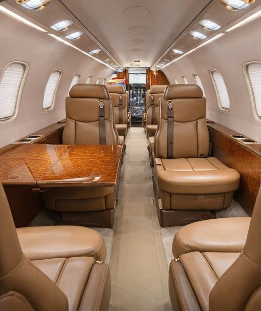 The 45XR cabin is known for being more accommodating than many light jets, with a flat floor and a layout that supports productive four-across club seating. Cabin noise and ride comfort are generally consistent with the class, and baggage access and volume vary by configuration. Lavatory arrangements are typically functional rather than luxurious; evaluate privacy, usability, and whether it is belted/approved for occupancy on specific aircraft.