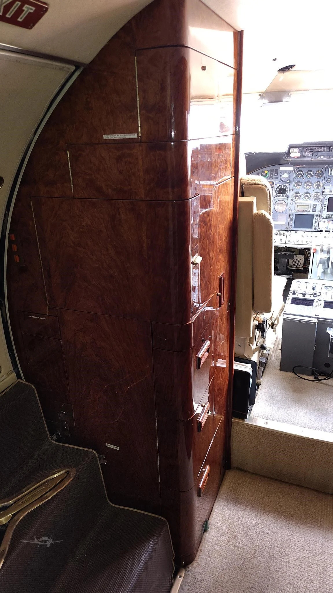 The cabin is configured around a compact club seating environment typical of Learjets, with a forward refreshment area depending on interior layout and an enclosed aft lavatory on many aircraft. Noise levels, fit-and-finish, and perceived space vary significantly by refurbishment quality and insulation updates. Baggage volume and access depend on the specific configuration and any aftermarket changes.