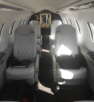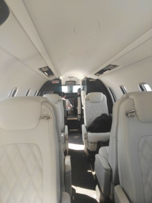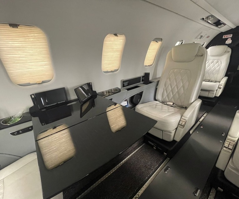 - Executive seating configuration: four (4) executive seats with fold-out tables in both forward and aft cabins