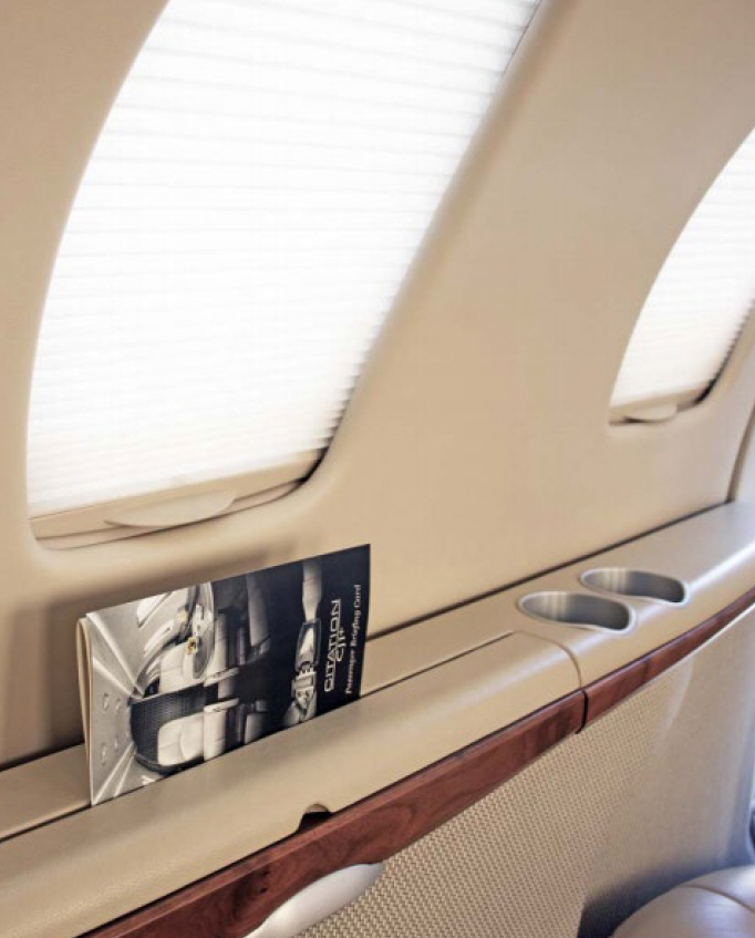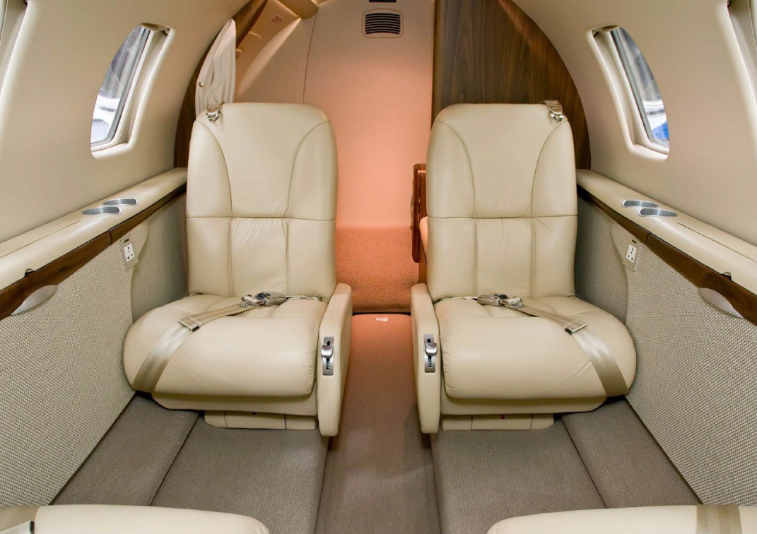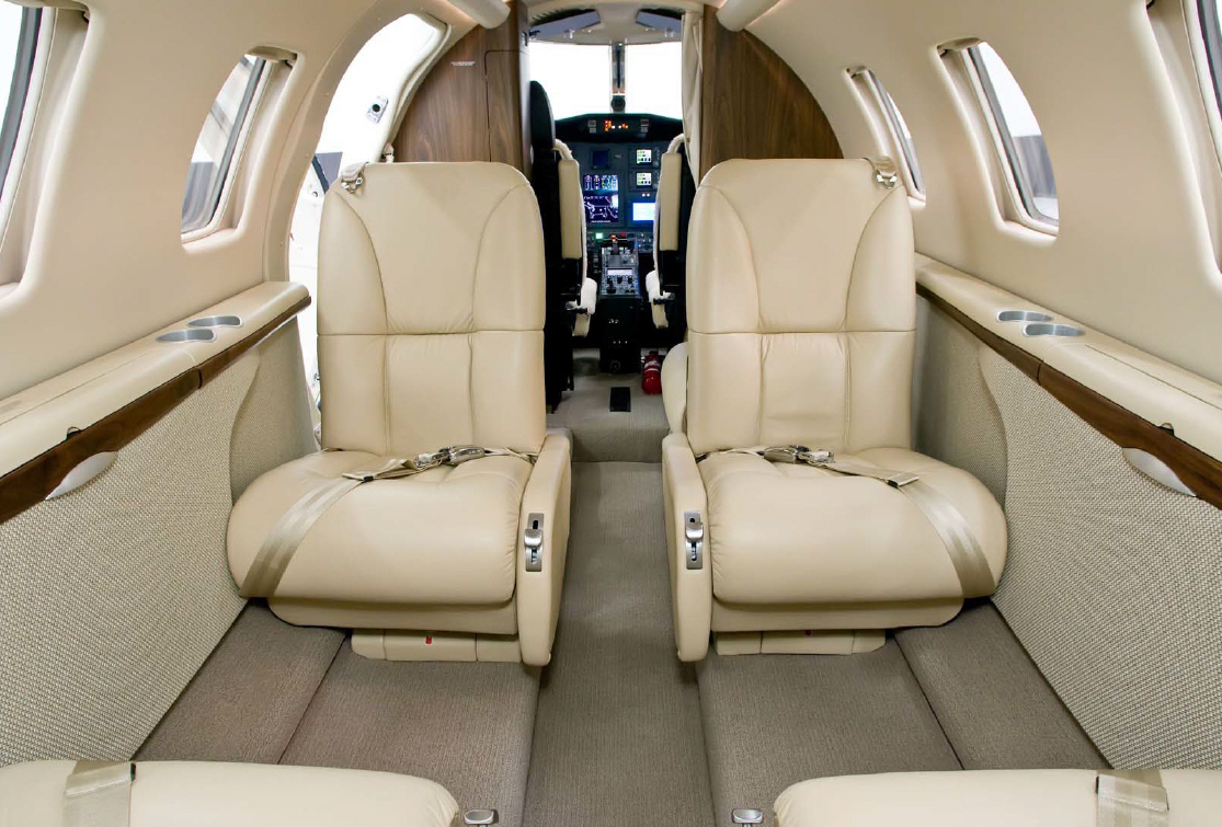 The CJ1 cabin is arranged for practical business travel rather than a large-cabin experience. Most aircraft are configured with a forward refreshment area and a club seating group, offering a quiet environment for conversation and laptop work, but limited ability for passengers to move around. The lavatory is typically an aft, enclosed unit; amenities vary by serial number and refurbishment history. Cabin storage and baggage space are adequate for soft bags and typical business luggage, with careful packing needed when flying full seats.