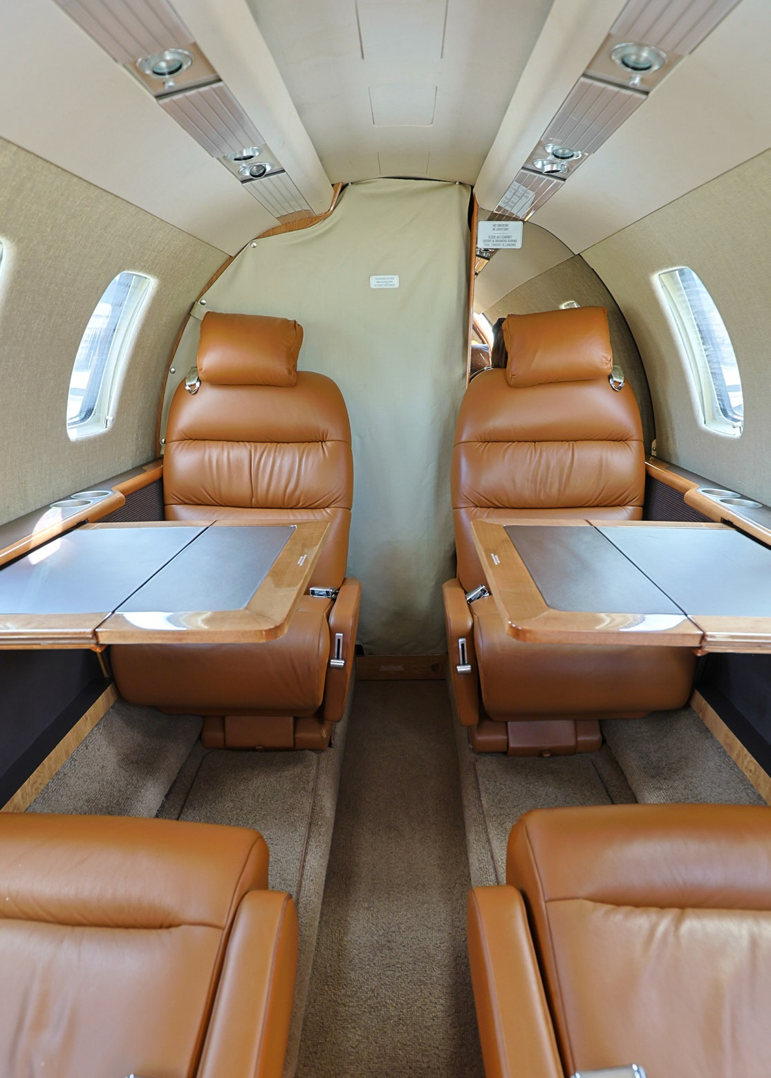 - Interior: Updated in 2016, seats 6, belted flushing aft lavatory, earthy tones, natural maple cabinetry, saddle leather seats