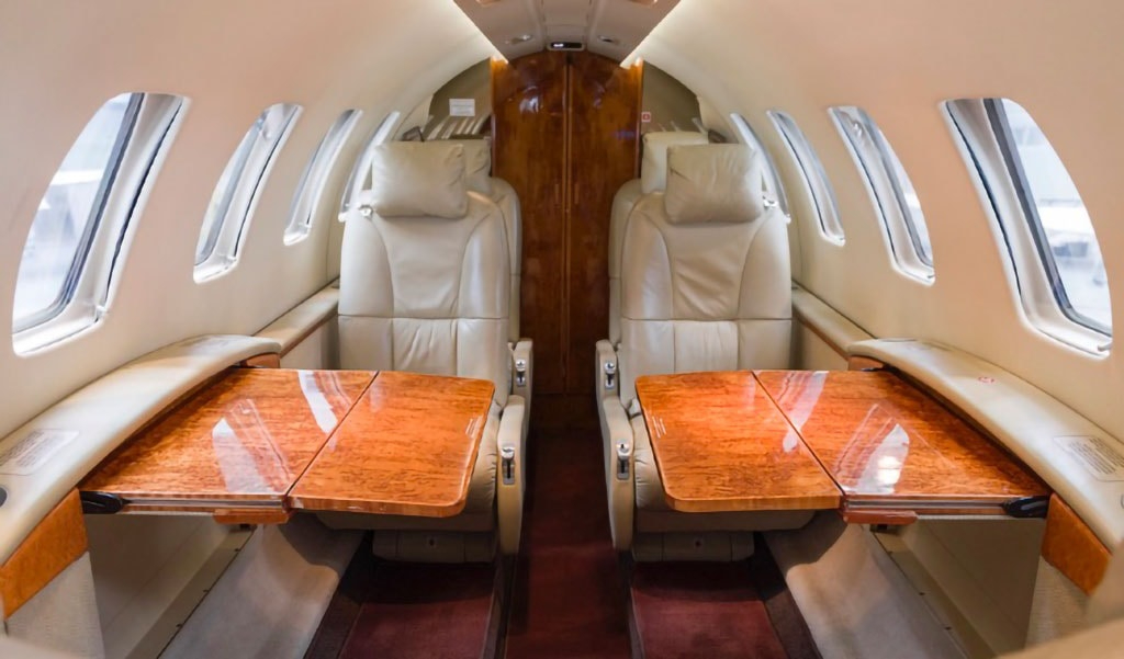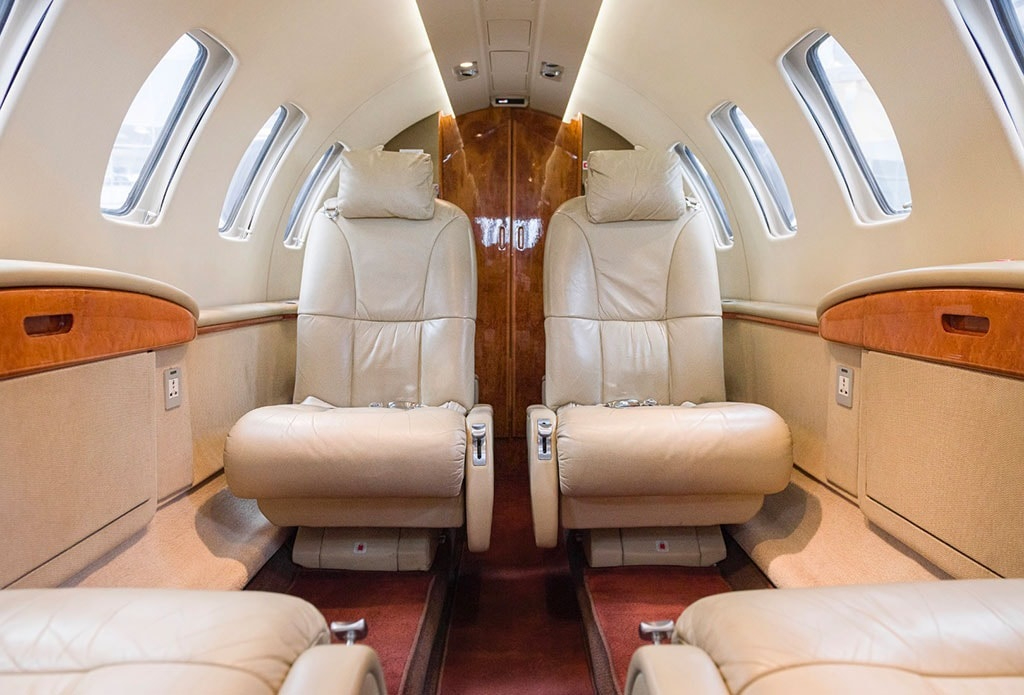 The CJ2 cabin is a compact, club-style environment sized for small groups. Seating is typically arranged for four in a club with additional side-facing or belted seating depending on configuration, making it comfortable for short-to-midrange legs and workable for longer flights when passenger count stays modest. Baggage is generally split between an exterior compartment and smaller in-cabin storage, so packing strategy matters for full-seat missions.