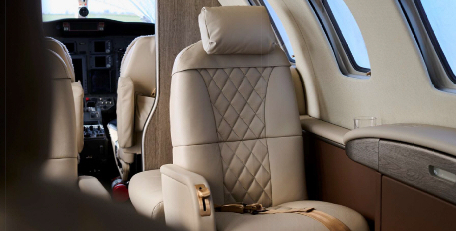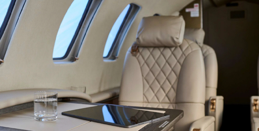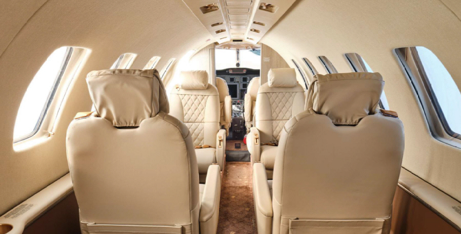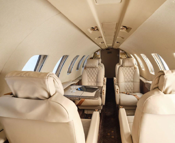 The CJ2 cabin is a compact, club-style environment sized for small groups. Seating is typically arranged for four in a club with additional side-facing or belted seating depending on configuration, making it comfortable for short-to-midrange legs and workable for longer flights when passenger count stays modest. Baggage is generally split between an exterior compartment and smaller in-cabin storage, so packing strategy matters for full-seat missions.