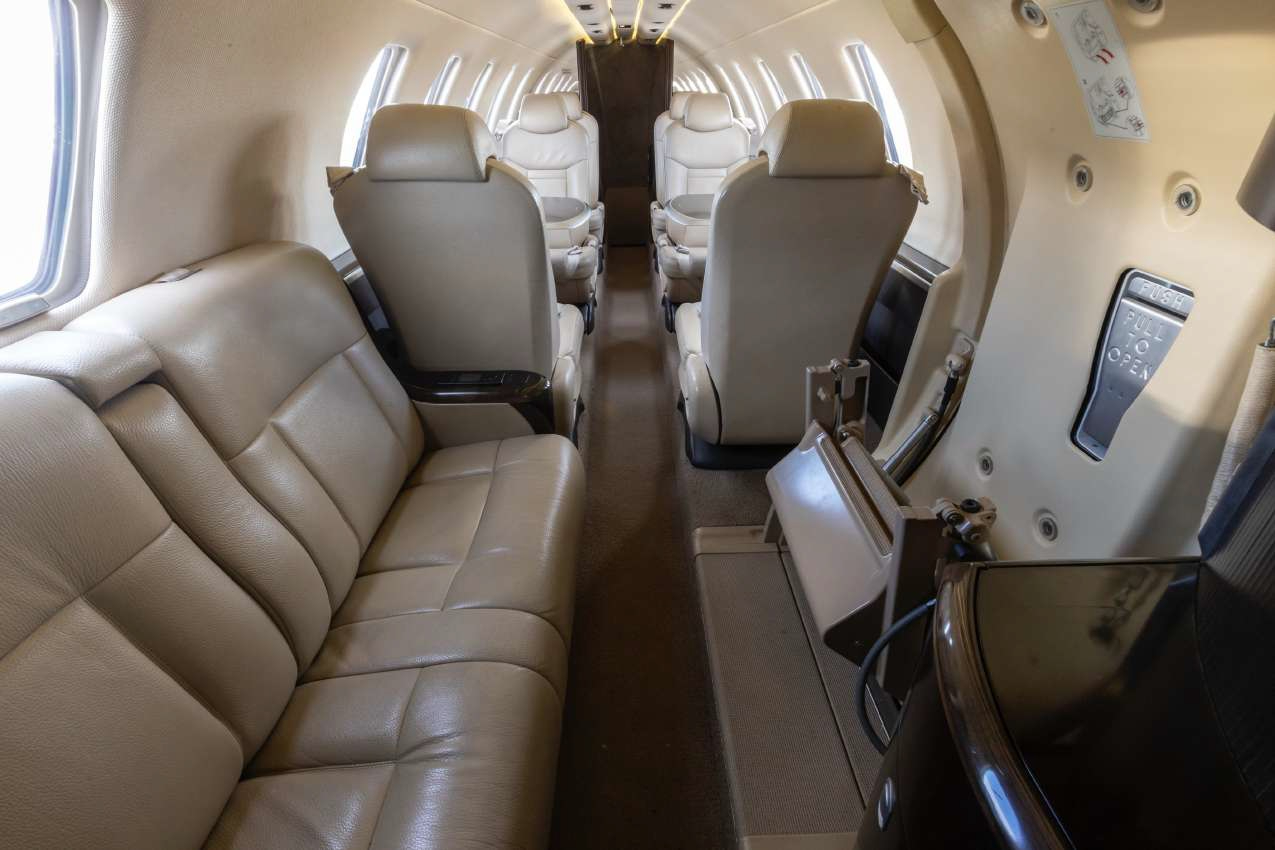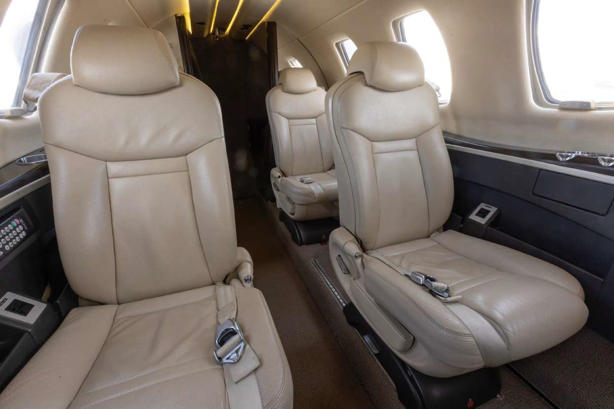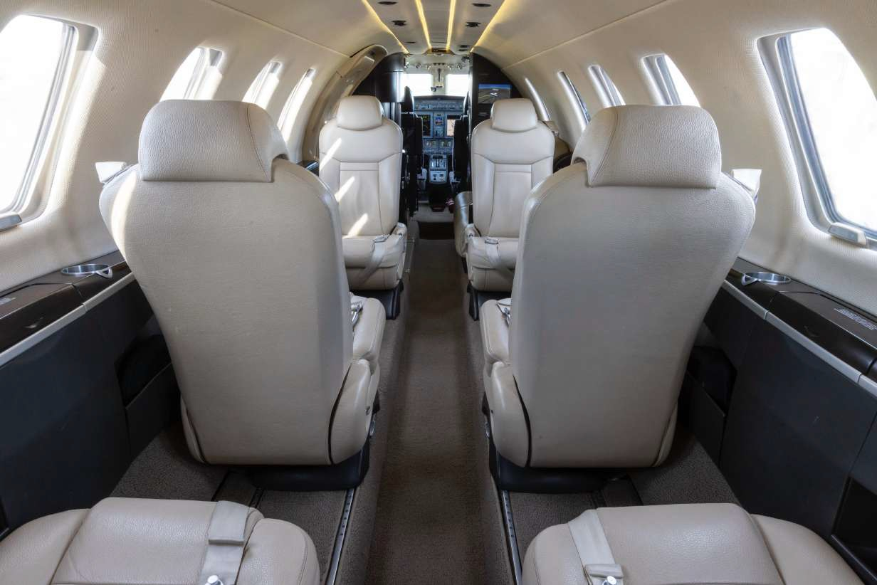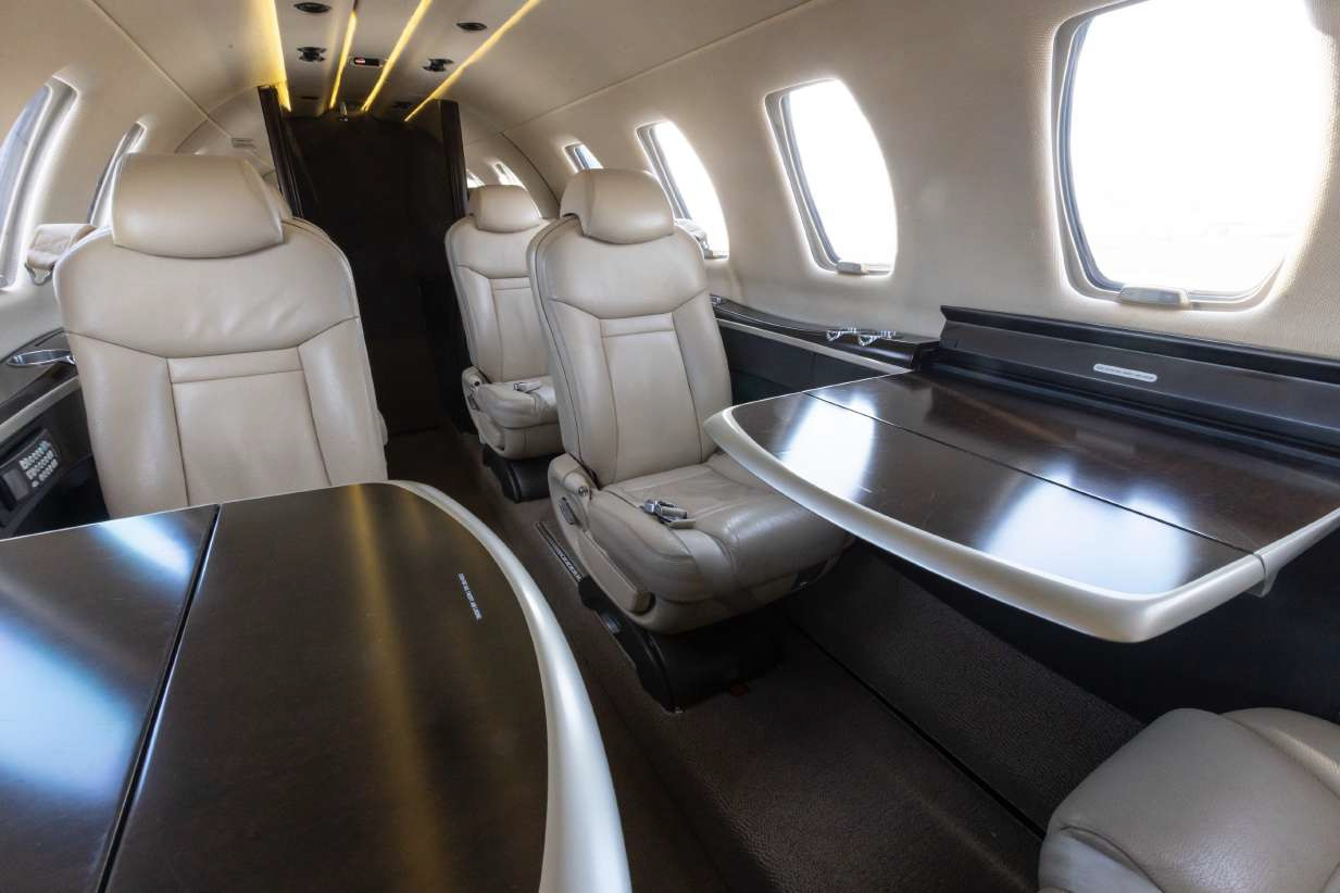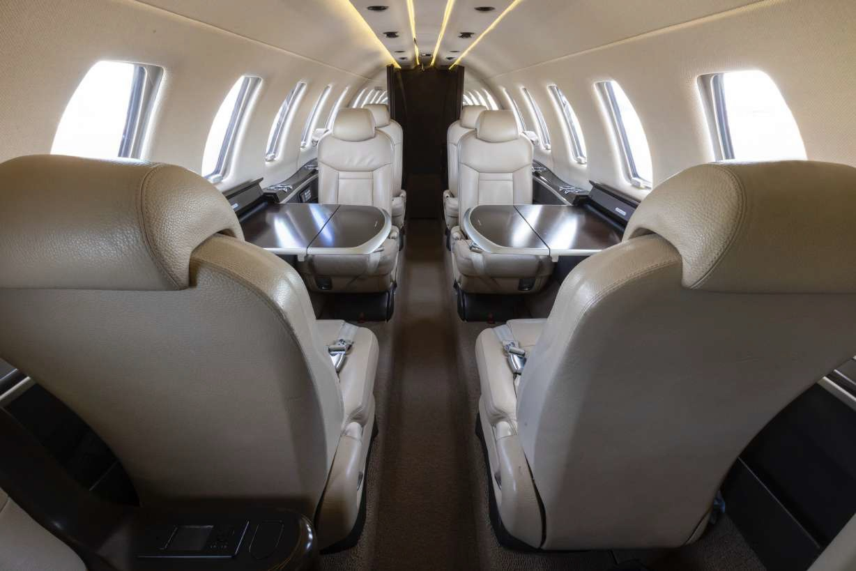 The CJ4 cabin is arranged as a compact club-style environment with an enclosed lavatory at the rear. Seating is generally comfortable for typical business-jet stage lengths, with a cabin height that requires most adults to remain seated while moving about. Baggage space is split between internal and external areas depending on configuration, and buyers should verify practical bag volume for the intended passenger count.
