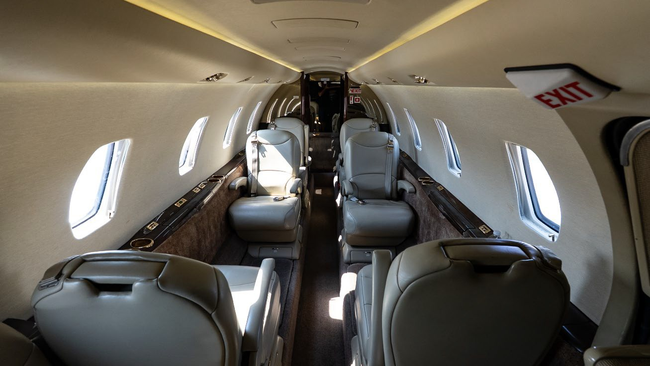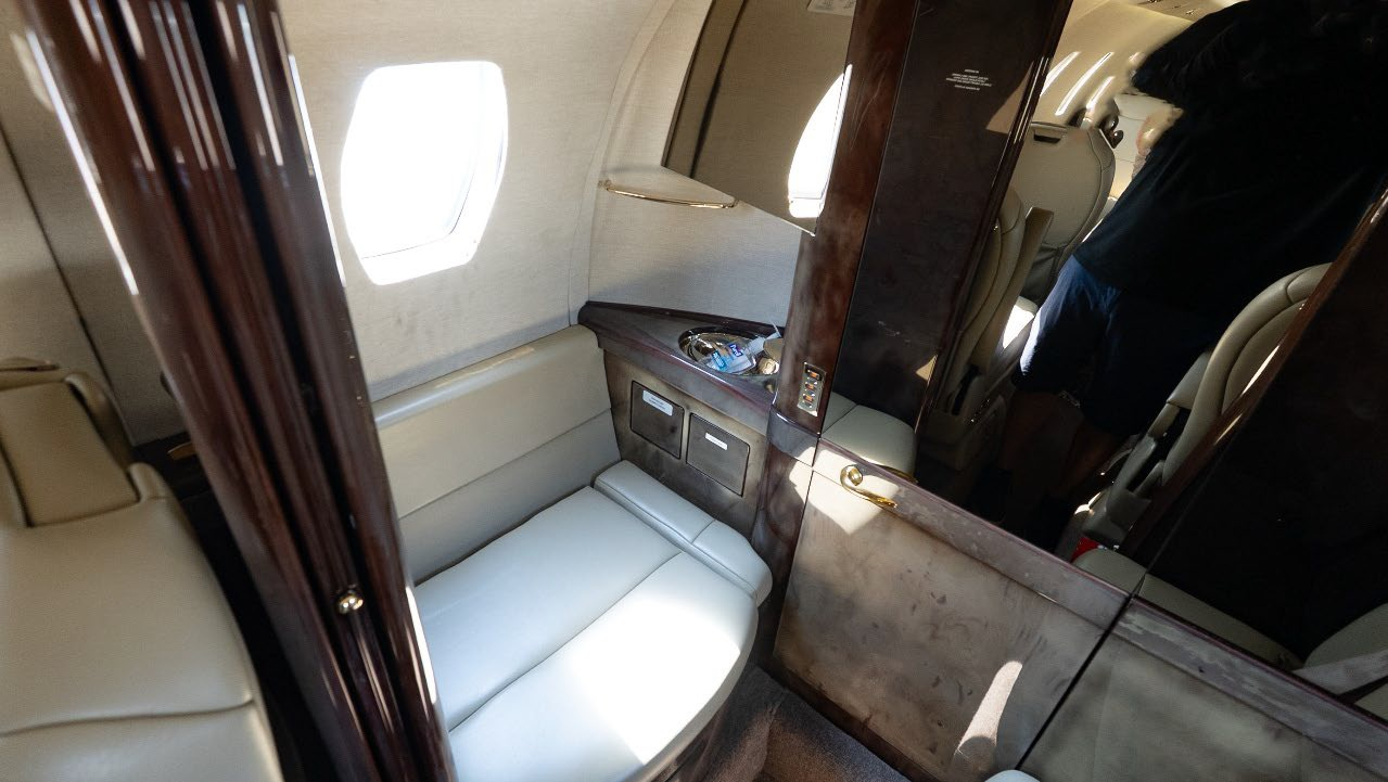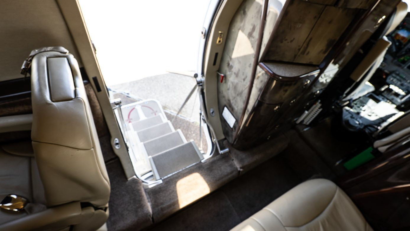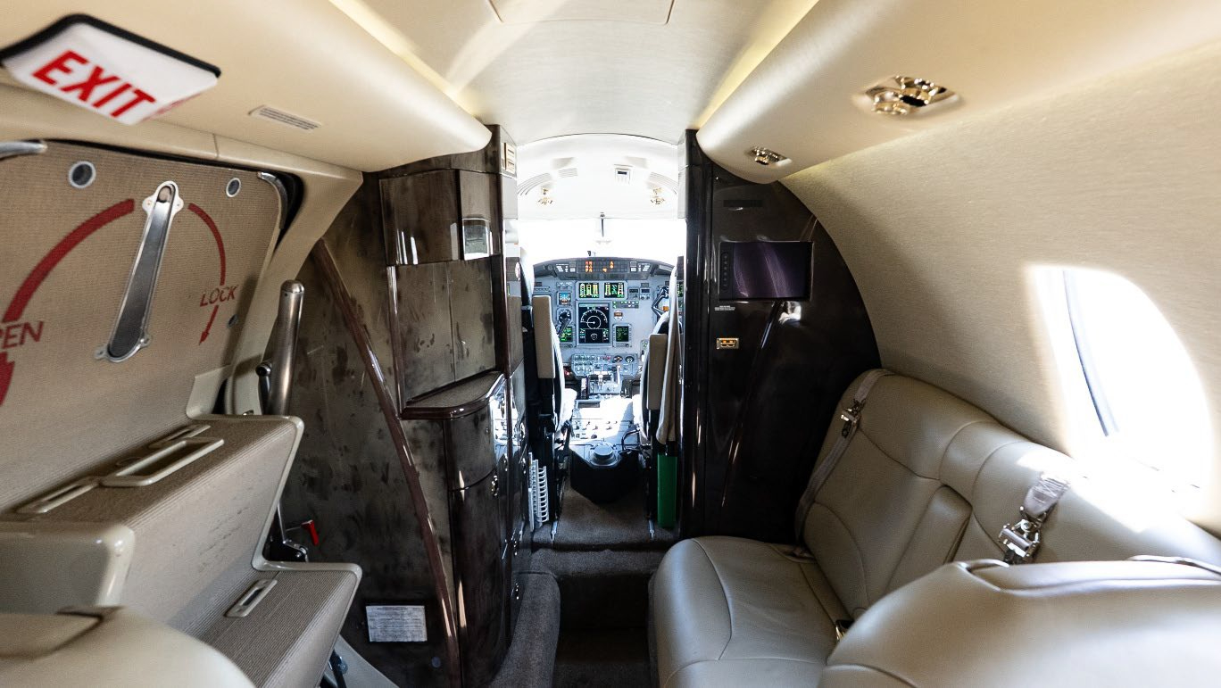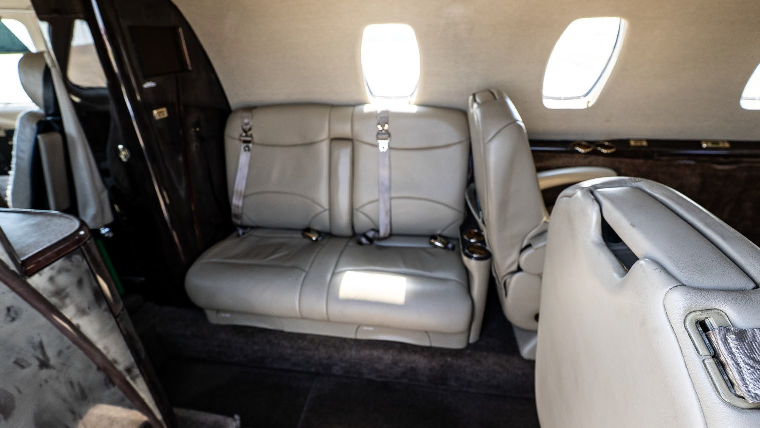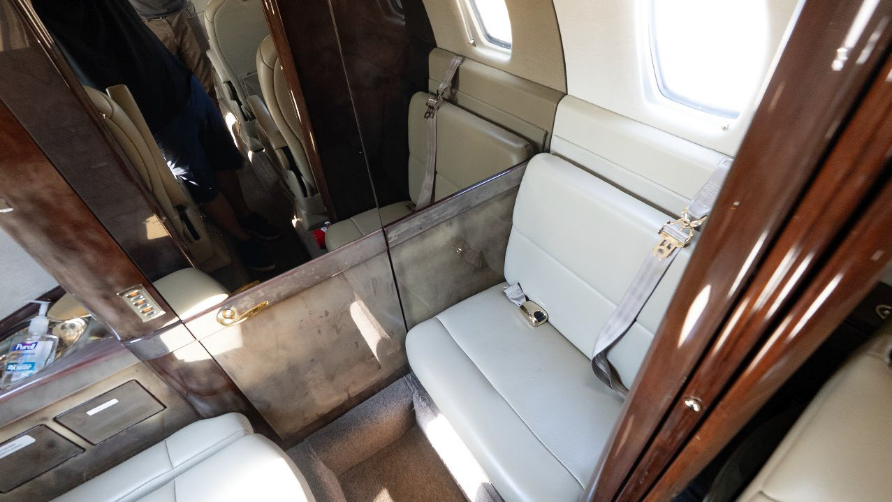 - Interior: Executive configuration, 9 passengers, beige leather seating, taupe carpeting, forward refreshment center, Gogo Biz w/ATG-5000 Wi-Fi.