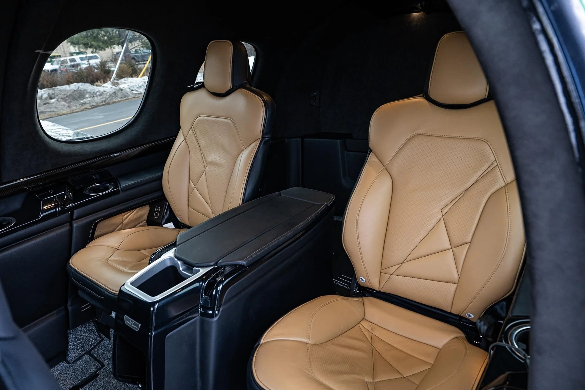 - Cabin: 8000 ft pressurized, modular seating for seven, executive seats