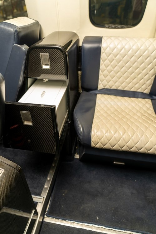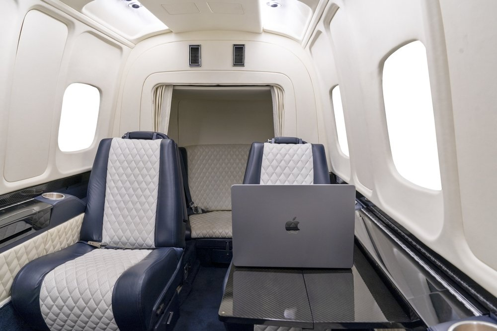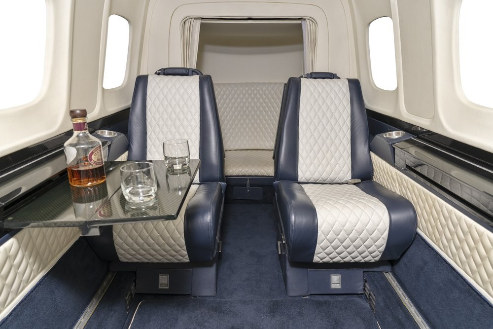 - Seating: 9 passenger seats, aft lavatory configuration
