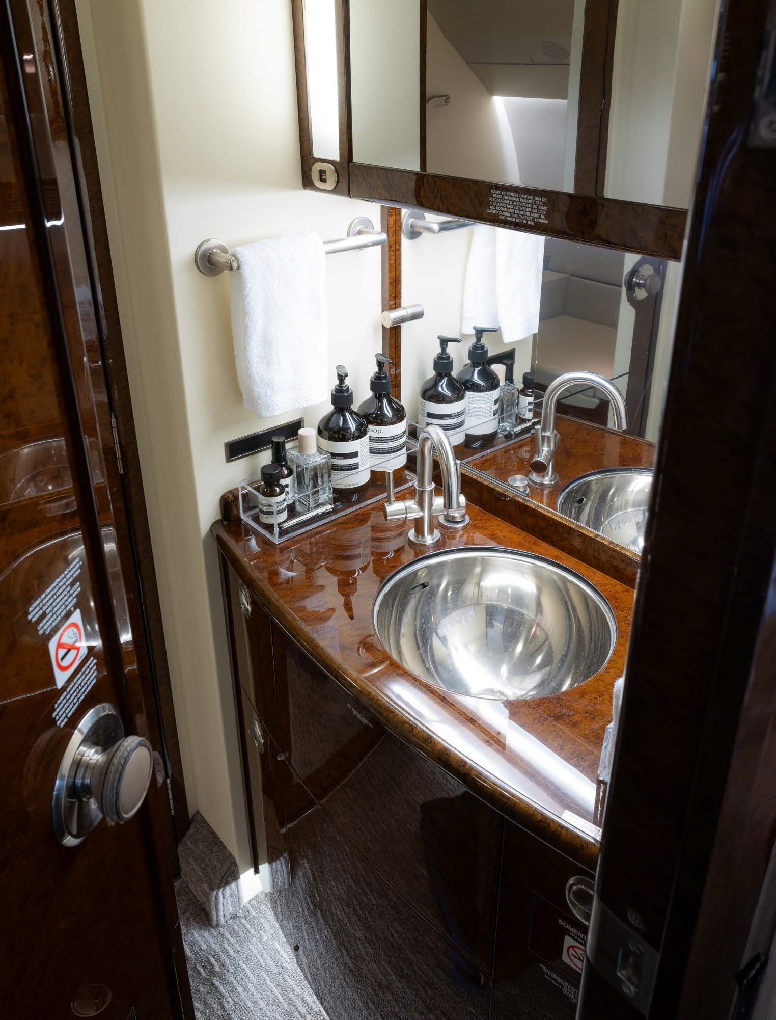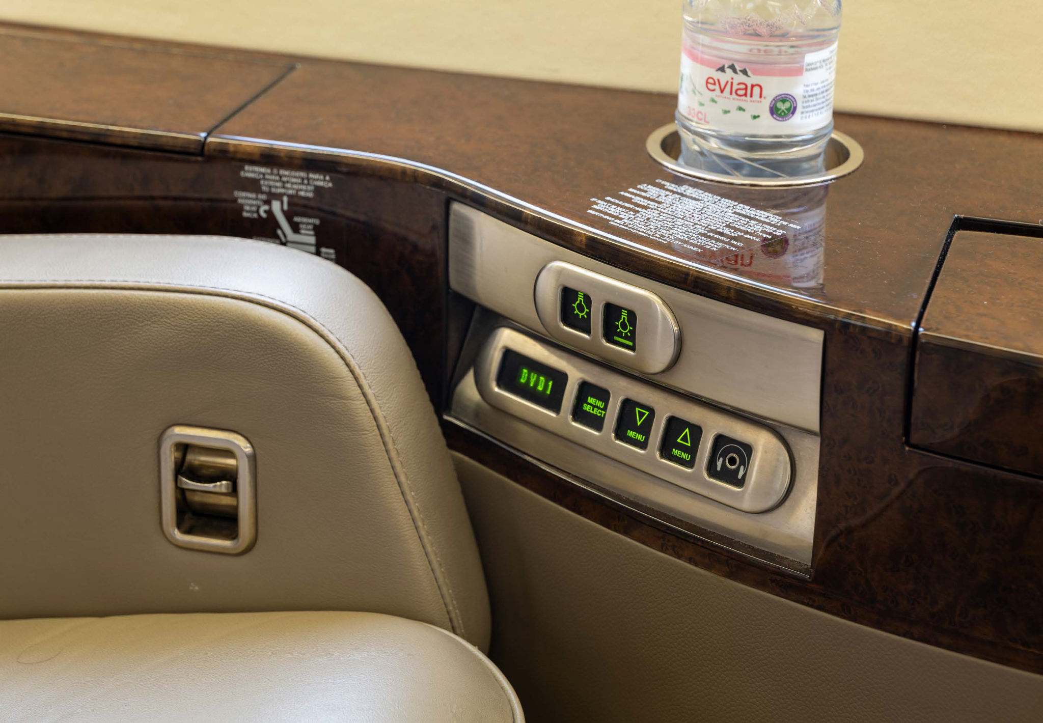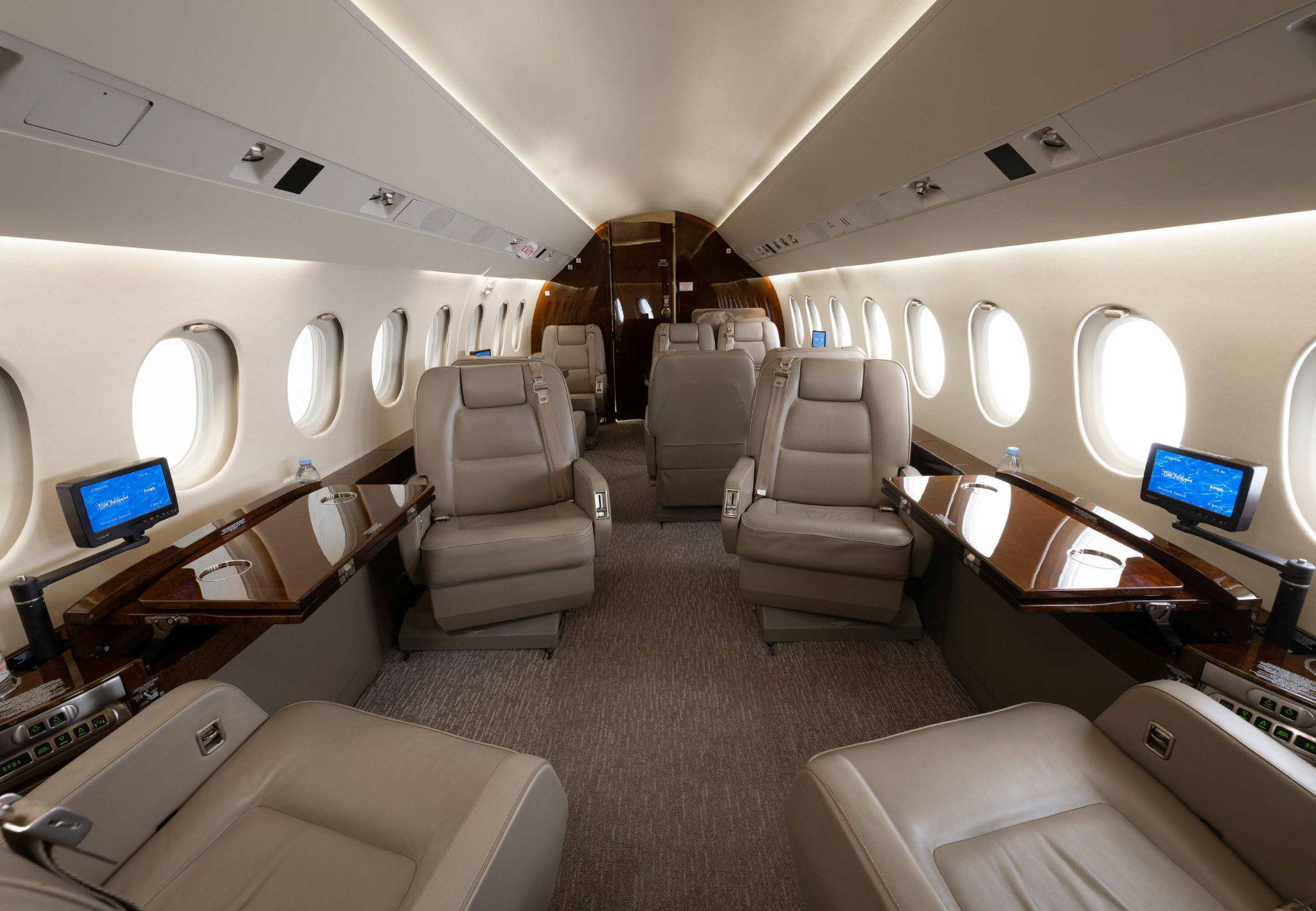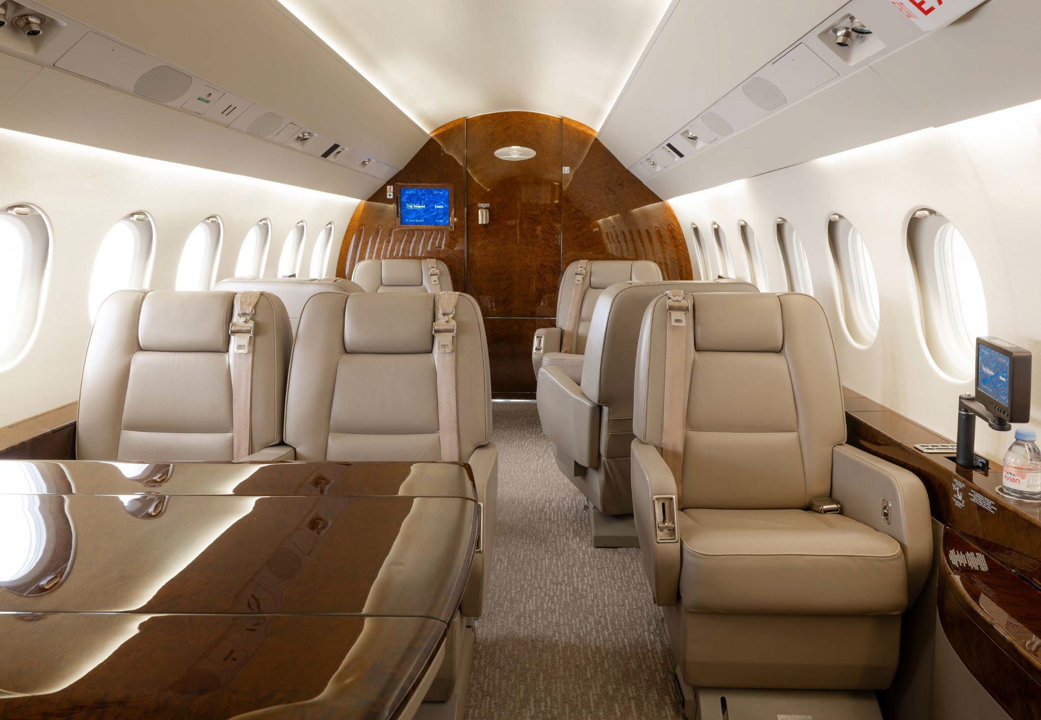 - Entertainment: AirShow 400 cabin video system with a forward 15-inch bulkhead monitor; cabin outlets for 230VAC/50Hz.