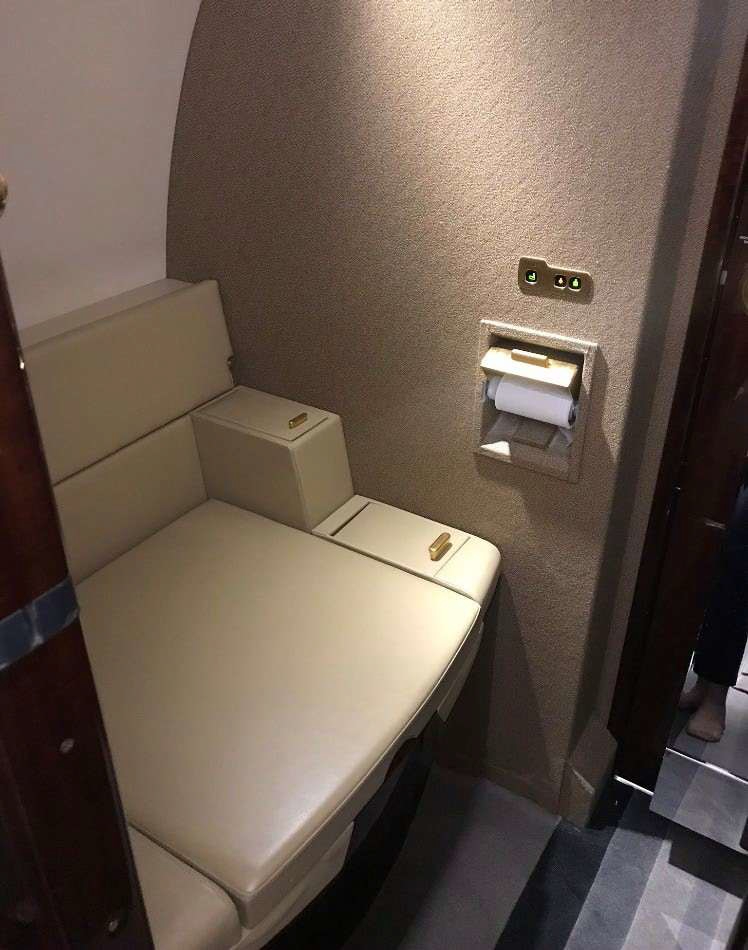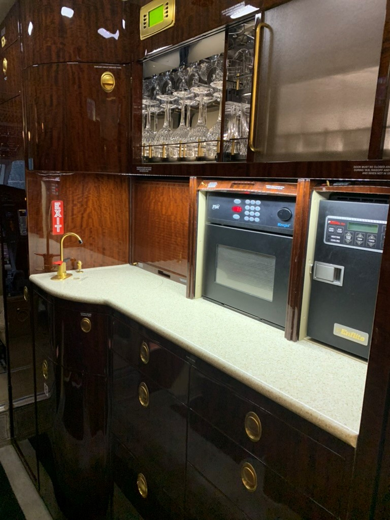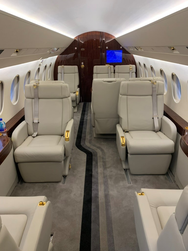 The cabin is known for its width and a layout that supports productive work and quieter conversation, with enough volume for multiple living zones depending on configuration. Typical arrangements seat 8–10 in a club and conference grouping, with an enclosed aft lavatory and a forward galley area. Baggage capacity is suitable for longer trips, and the cabin cross-section generally feels less restrictive than narrower super-midsize cabins, especially for shoulder room and aisle movement.