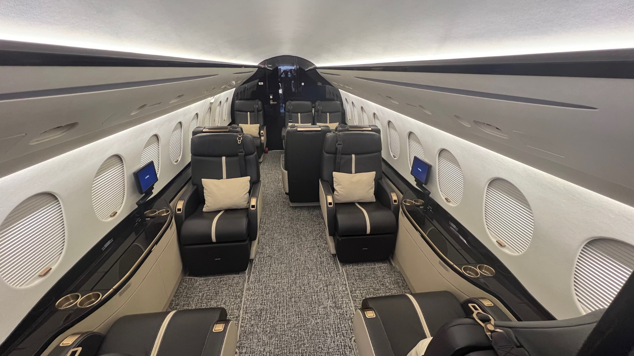 The cabin is a hallmark: wide enough for comfortable side ledge space and shoulder room, with a flat floor and a layout that supports both working and relaxing. Typical configurations center on a forward galley, a main seating area arranged in a club, and an aft lavatory; many aircraft include an aft divan that can function as an additional seat or rest option depending on the interior. Baggage volume is usually adequate for multi-passenger trips, and the environmental system is designed for long legs with a consistent cabin feel.