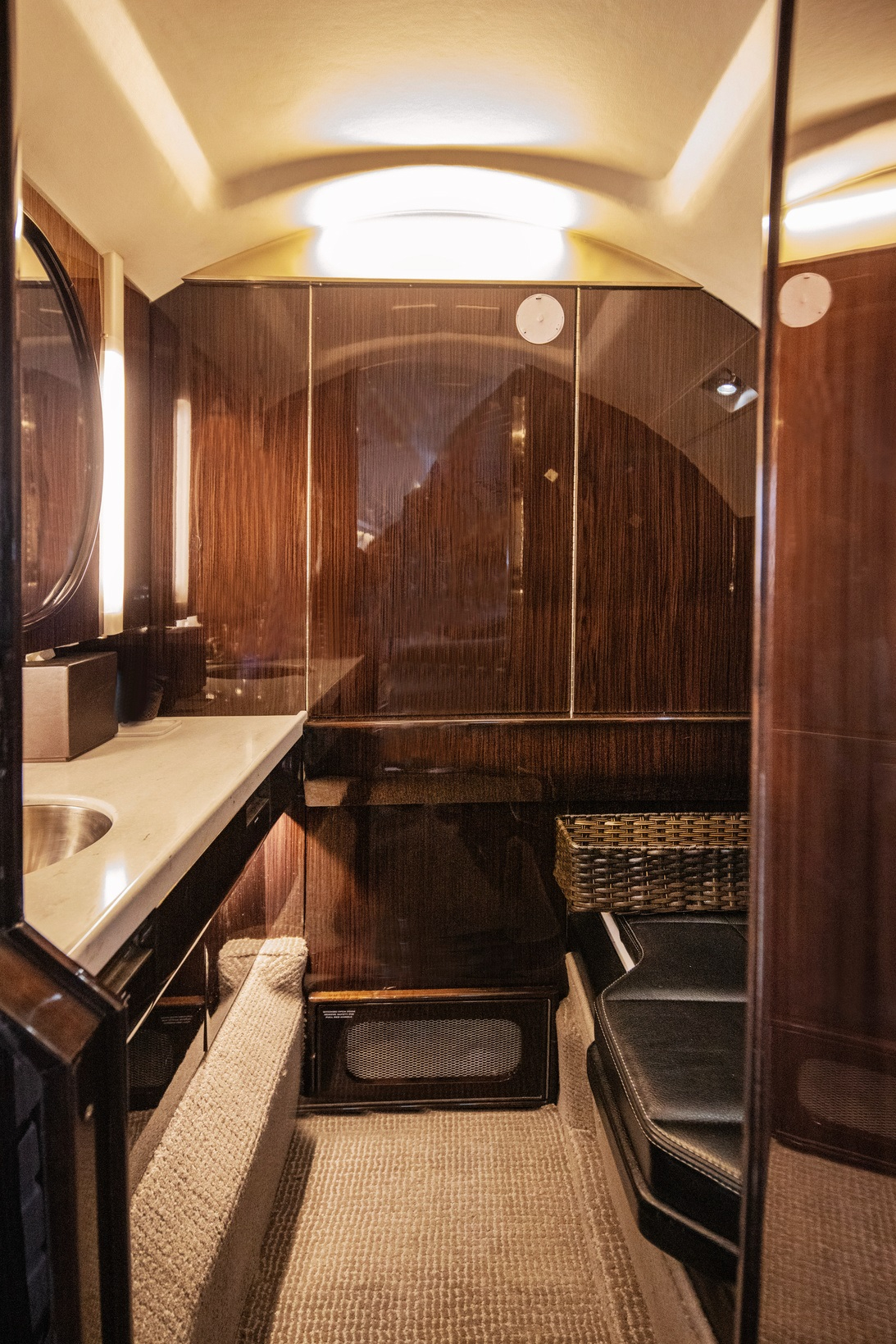 Cabin layout typically supports a club seating arrangement with an additional seating group aft, plus an enclosed lavatory. The cabin is generally regarded as comfortable for midsize-to-large-cabin class travel of its generation, with good baggage capacity and the ability to carry coats and catering equipment. Noise levels, cabin electronics, and connectivity depend heavily on refurbishment and avionics/cabin retrofit history; many aircraft have been updated with modern interiors and in-cabin power, while others remain largely original.