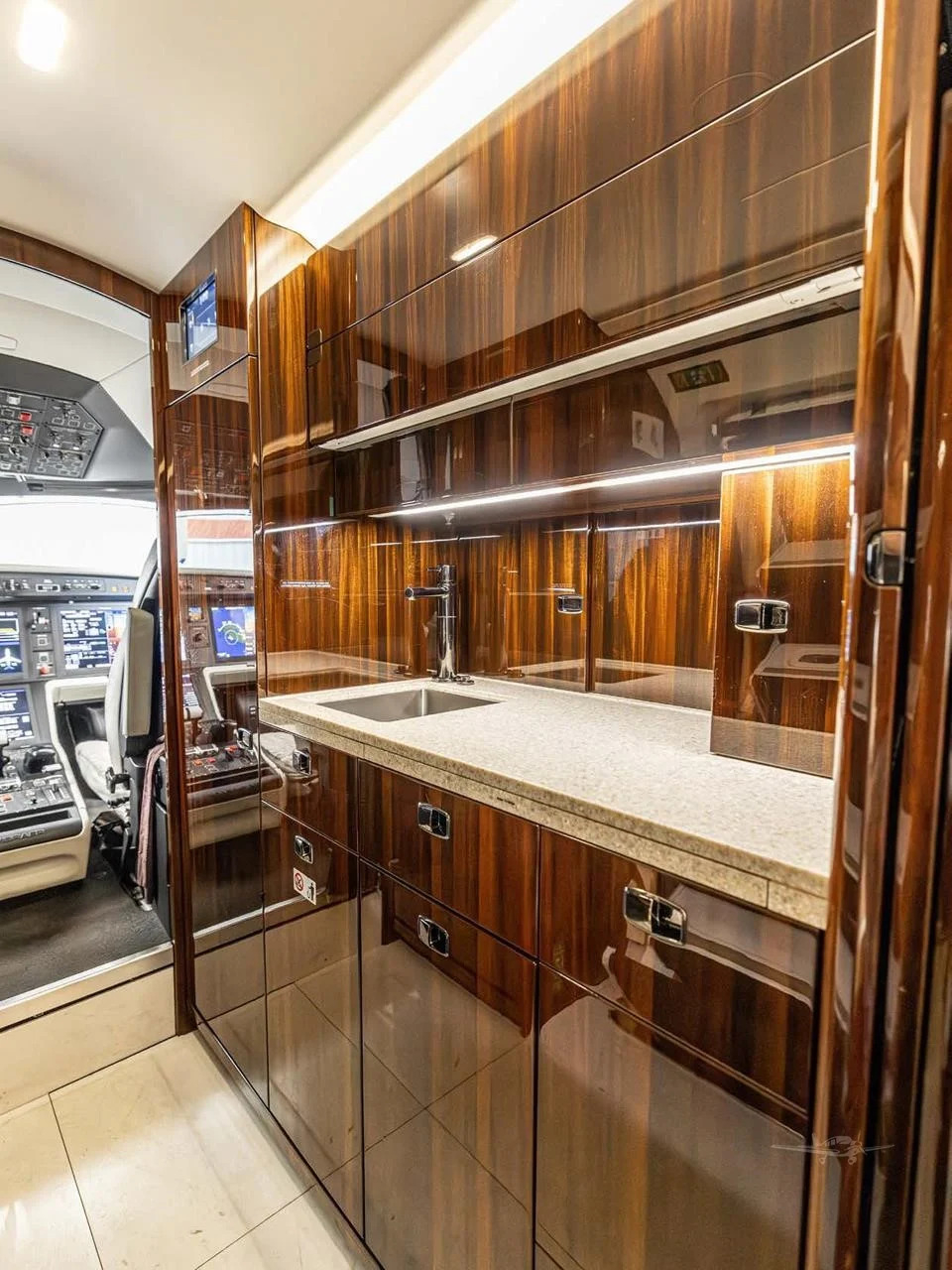 - Forward galley with microwave and coffee provisions