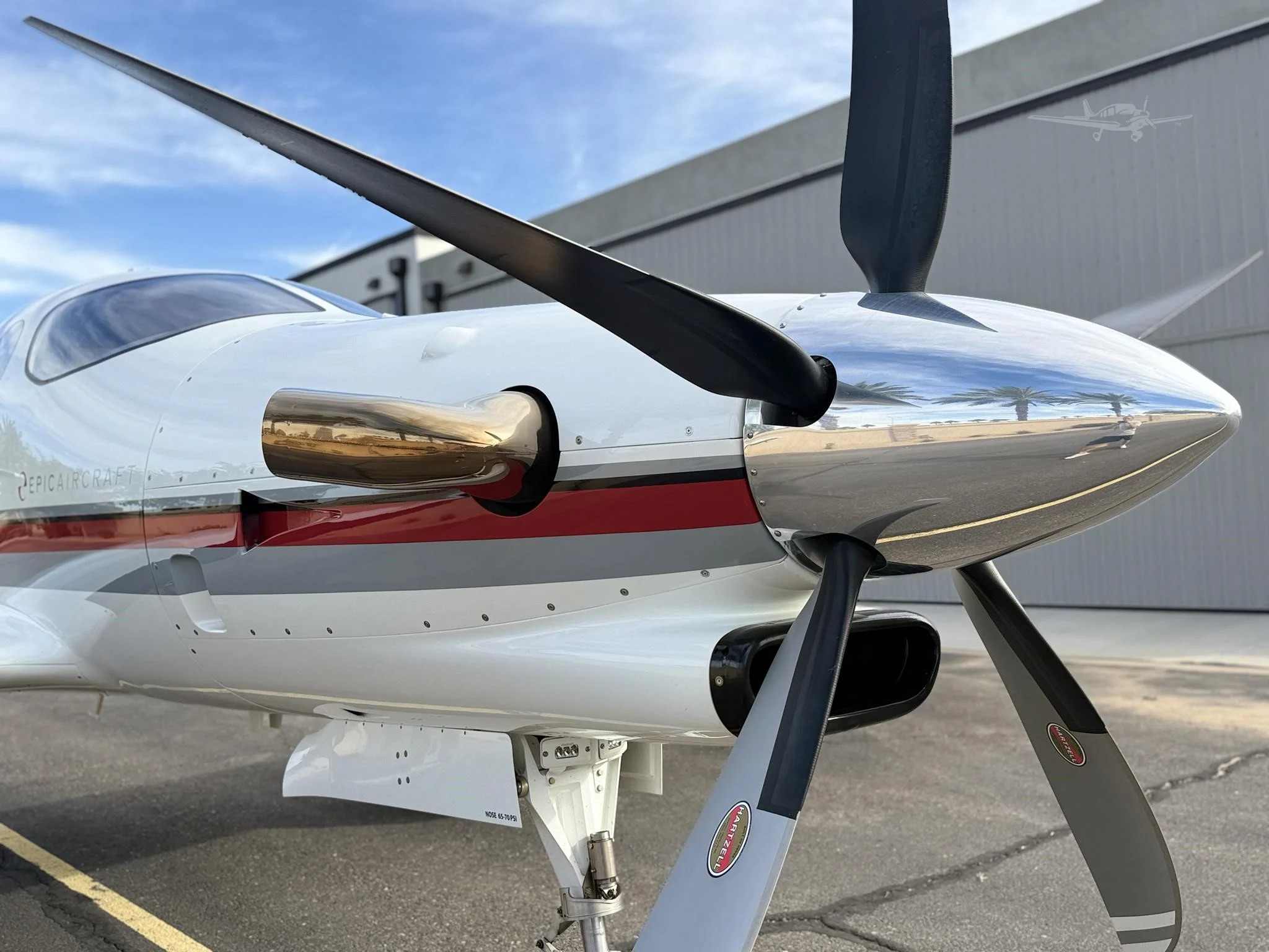 - Propeller: Hartzell 5-blade composite, full feathering, reversible pitch, electrically de-iced