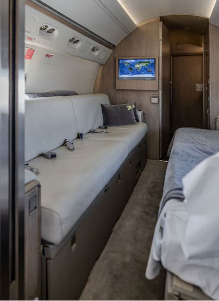 - Entertainment: Rockwell Collins Venue cabin system, three 20” LCD monitors, dual Blu-Ray players