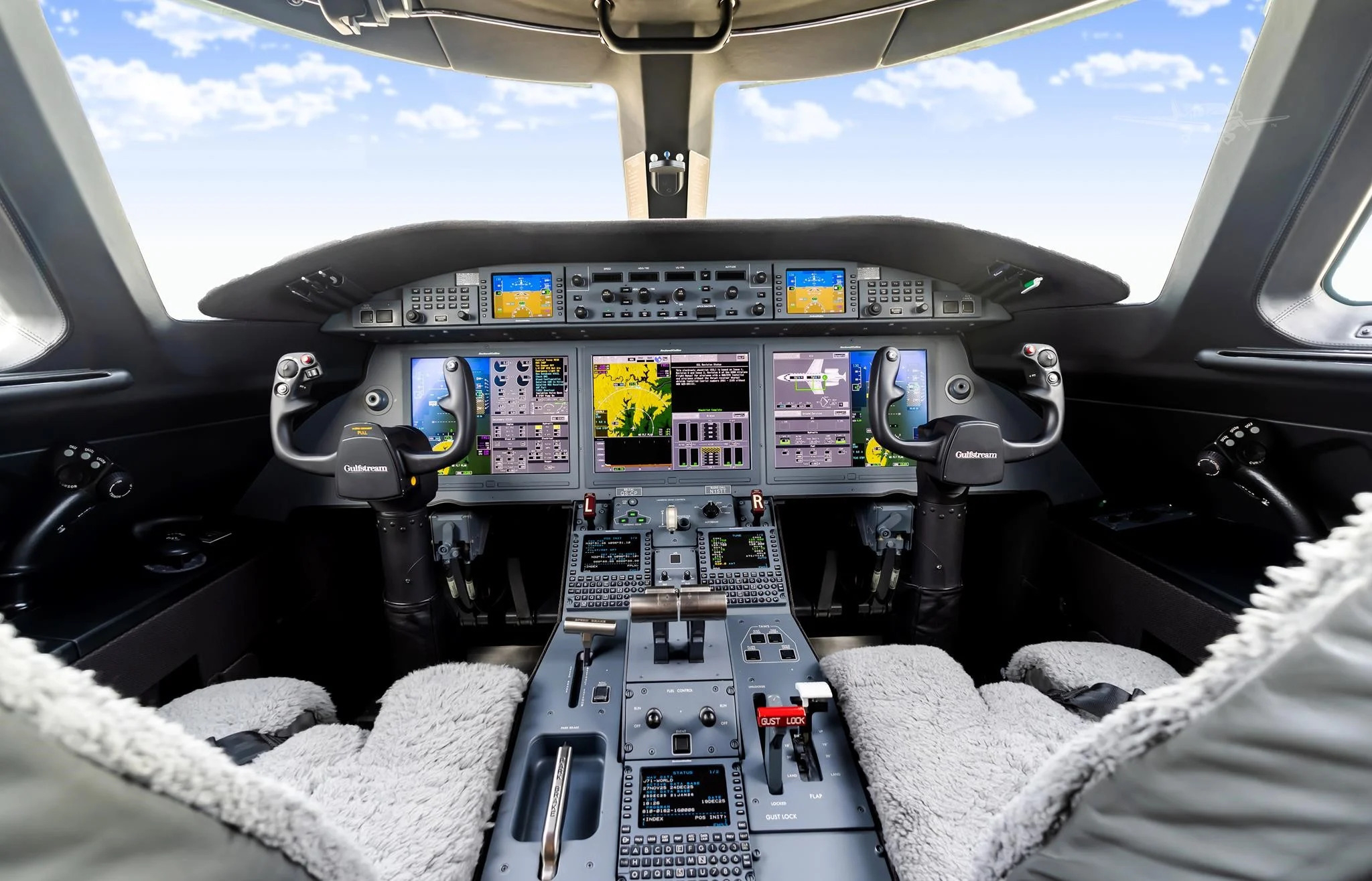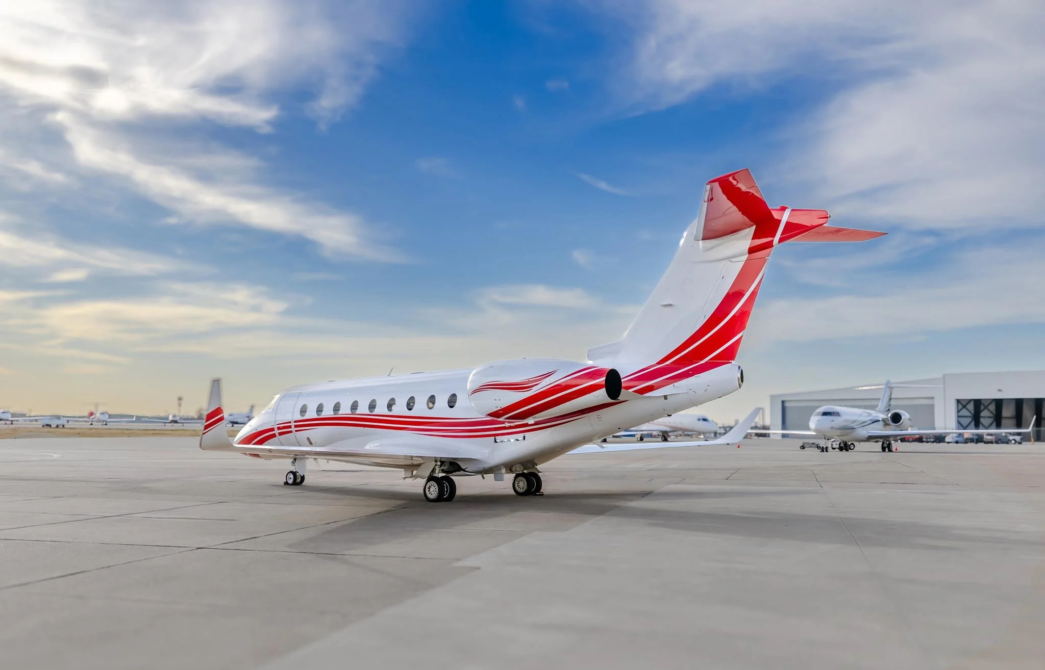 - Features: Equipped with high-speed data/Wi-Fi, synthetic vision system, enhanced vision system, heads-up display, SATCOM, and third flight management system; standard RVSM, thrust reversers, APU, terrain awareness, and traffic collision avoidance system.