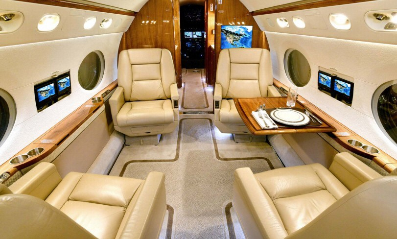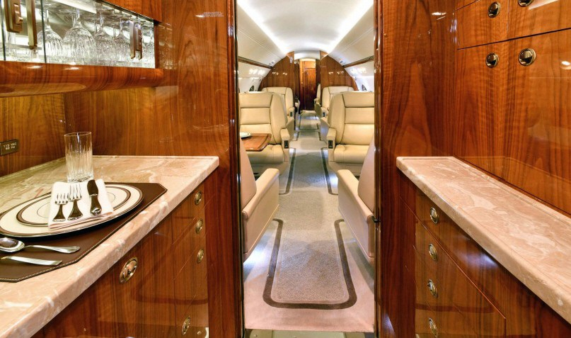 - Interior Configuration: 14 passengers, executive layout with dual vacuum lavatories