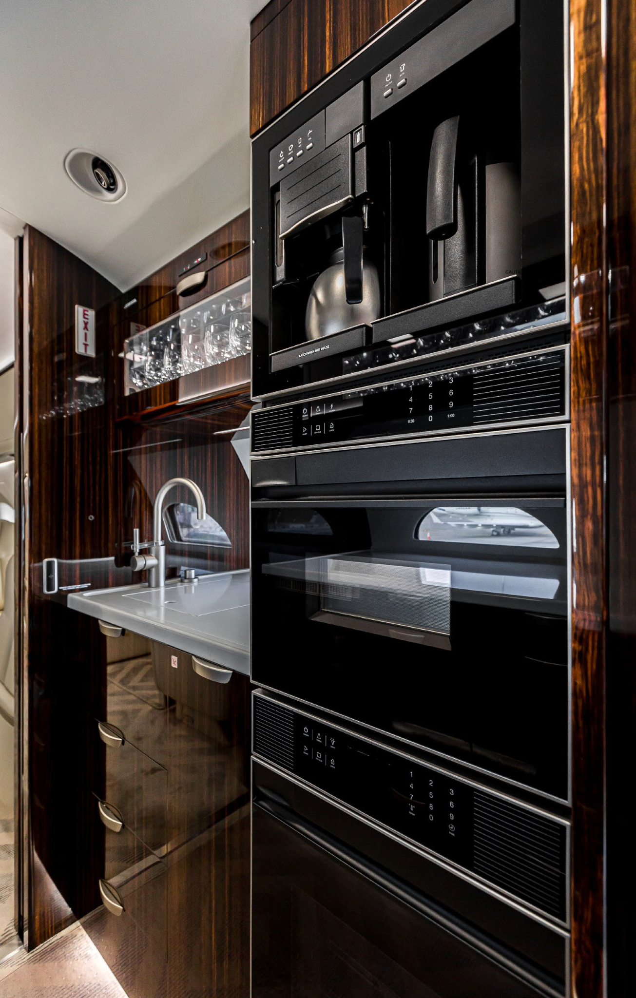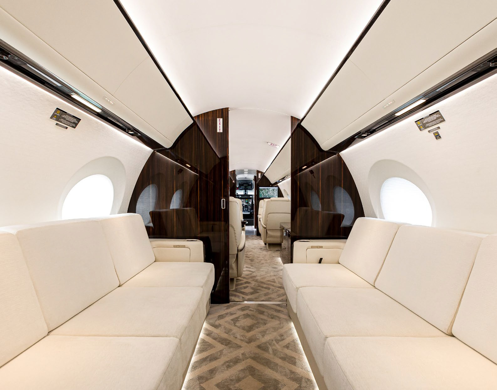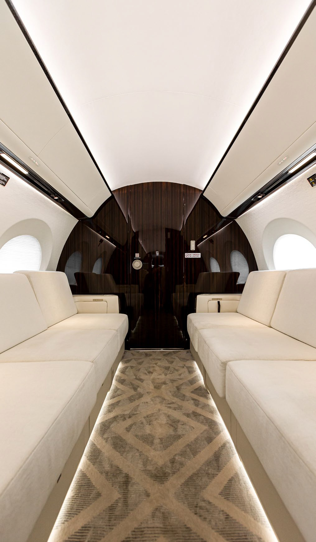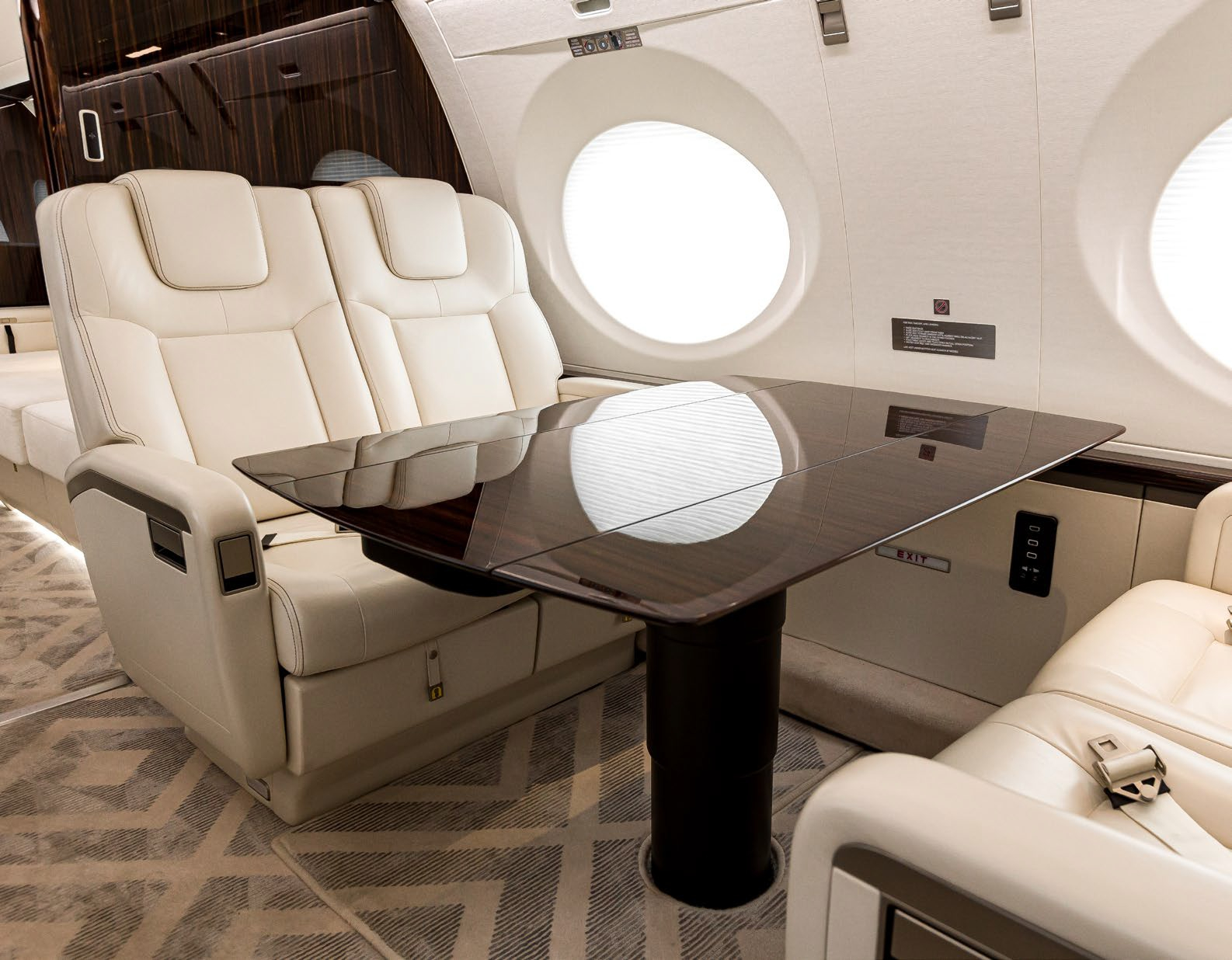 The cabin is arranged to support long missions: a stand-up class cross-section, multiple living zones, and a galley/entry area that can sustain full-service catering. Typical interiors emphasize low fatigue on extended flights through pressurization and sound management (exact values vary by build), with connectivity and power provisions commonly specified for work-focused trips. Baggage access and lavatory fit depend on the specific completion.