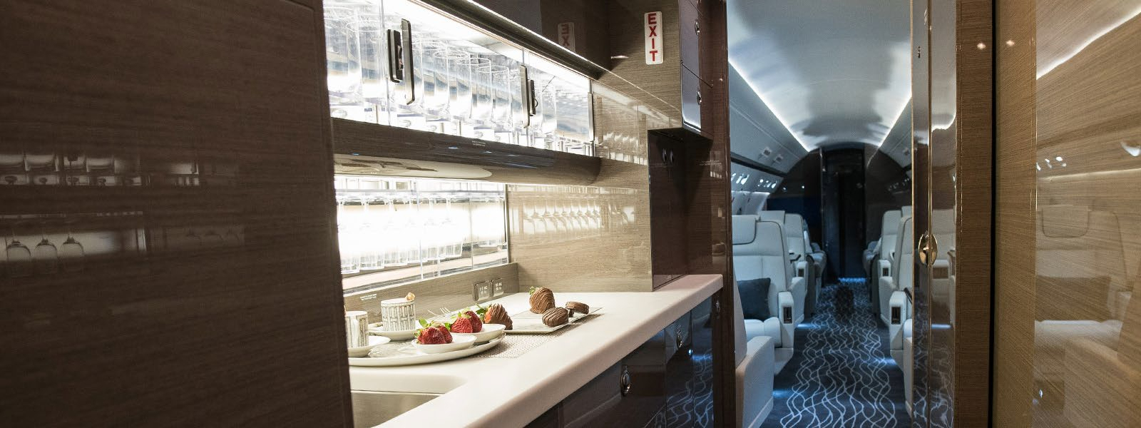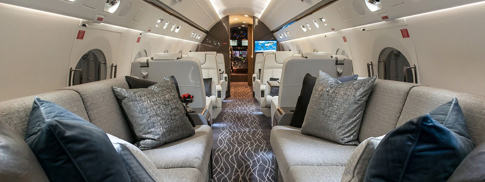 The cabin is configured as a true large-cabin environment with a long, stand-up cross-section and multiple living/working zones. Typical arrangements support a forward galley, a conference or club seating area, and an aft lounge, with an enclosed lavatory and generous baggage volume for long trips. Cabin altitude is managed for long-duration comfort, and the aircraft is commonly equipped for international connectivity and in-flight productivity, subject to specific avionics and cabin management options.